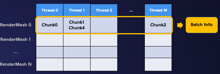我们的优化方向就是多线程化,充分利用移动端的多核优势。其实在生成合批信息时,不同的RenderMesh一定对应不同的batch,任务本身具有可多线程化的特性。