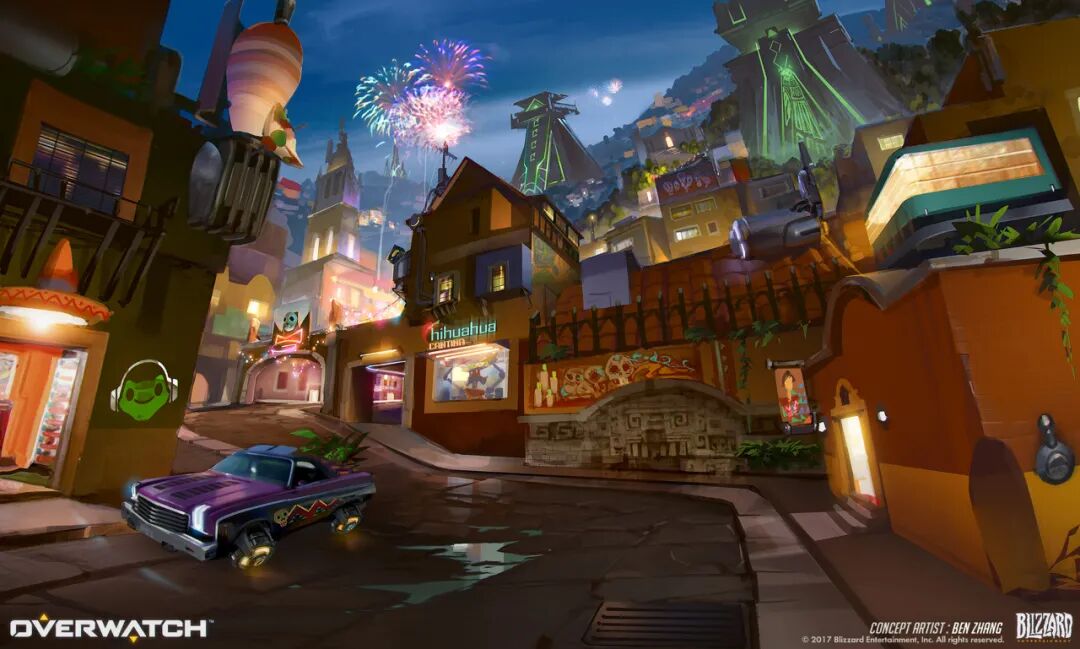 职业生涯曾参与过的游戏项目有:Hearthstone, Fire fall, 天启者, 等等,还有一个初创项目因为未曾上市就不多列举了。职业高光应该是在2011年加入暴雪娱乐,担任守望先锋项目的首席概念设计师一职。在此期间我参与并主导从守望一代开始的大部分场景概念设计工作,也是黑影、布里吉塔等英雄以及非常多的角色皮肤的设计师。职业特长是没有特长,哈哈,从角色到场景,从特效到UI甚至插图都有所染指,目标是成为一个六边形战士。