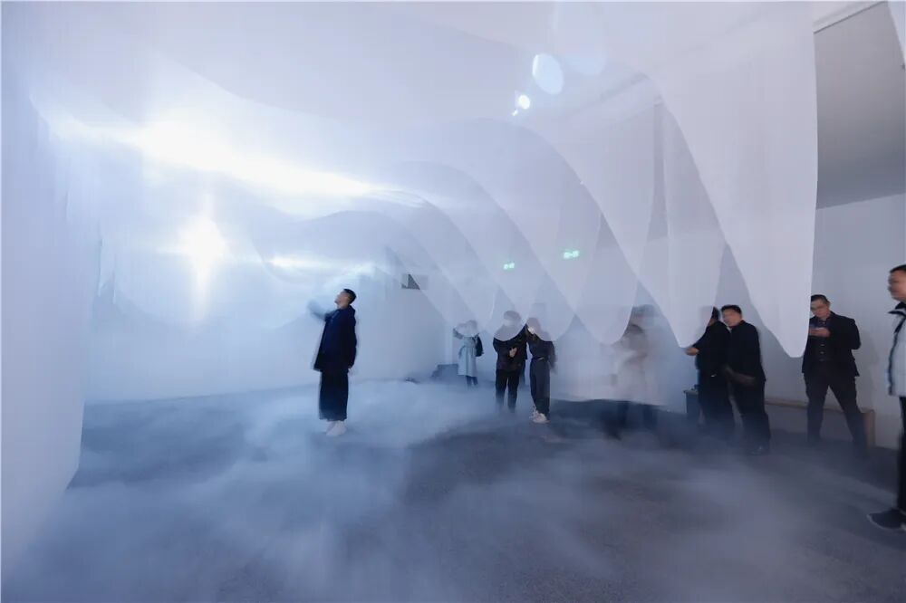 最后一层释义为“天命”,艺术家汤国与严善錞都以艺术趣味“立命”,将作品置于一种不确定性中,是模糊,与自然暧昧的抽象率真的语言。严善錞对于西湖景观的联结与汤国造纸的行为所赋予的禅意,这种个体化的生活经验通过个人化的艺术语言,围绕人与自然,人与天地“合”的东方思路。