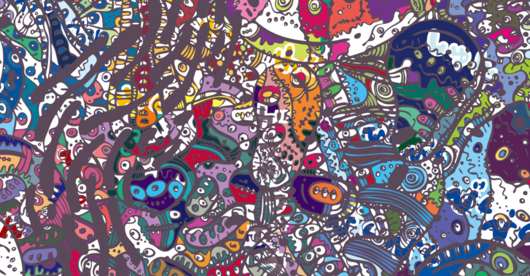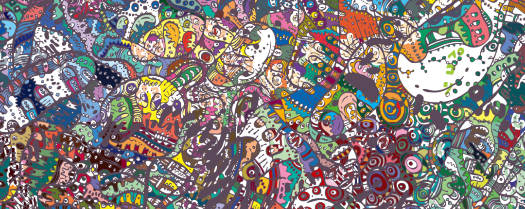 作品《世界无穷》来自SORA项目,该项目试图与他人共同创造一件由来自世界各地的人组成的艺术——通过让人们描绘各自的画作,并把这些画拼在一起成为一件单独的艺术品。这个项目的目的是实现“共同创造的艺术”,使人们对“所有权”产生思考。