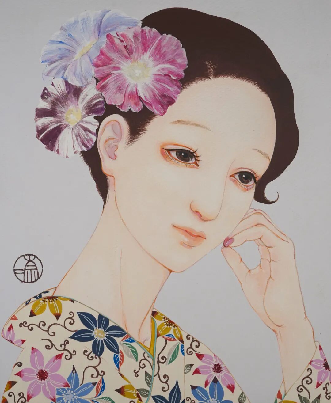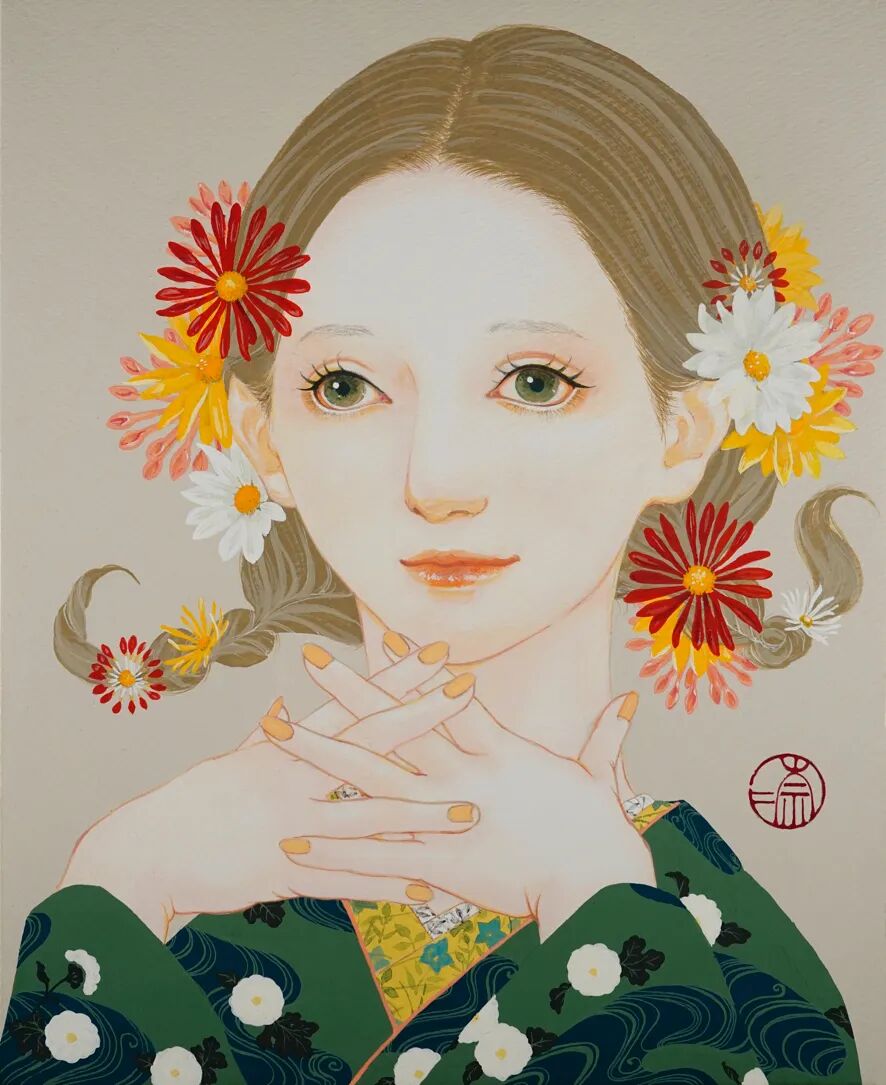 近年来,门田奈奈开始创作从江户时代开始在熊本流行的六种花卉“肥后六花”(肥后山茶花/肥后朝颜/肥后菖蒲/肥后芍药/肥后菊)与女性。正如大自然和她遇到的许多事物对她和她的创作产生了积极的影响一样,门田奈奈希望通过她的创作能够带给人们女性的美丽以及来自大自然中的感动和土地的芬芳。