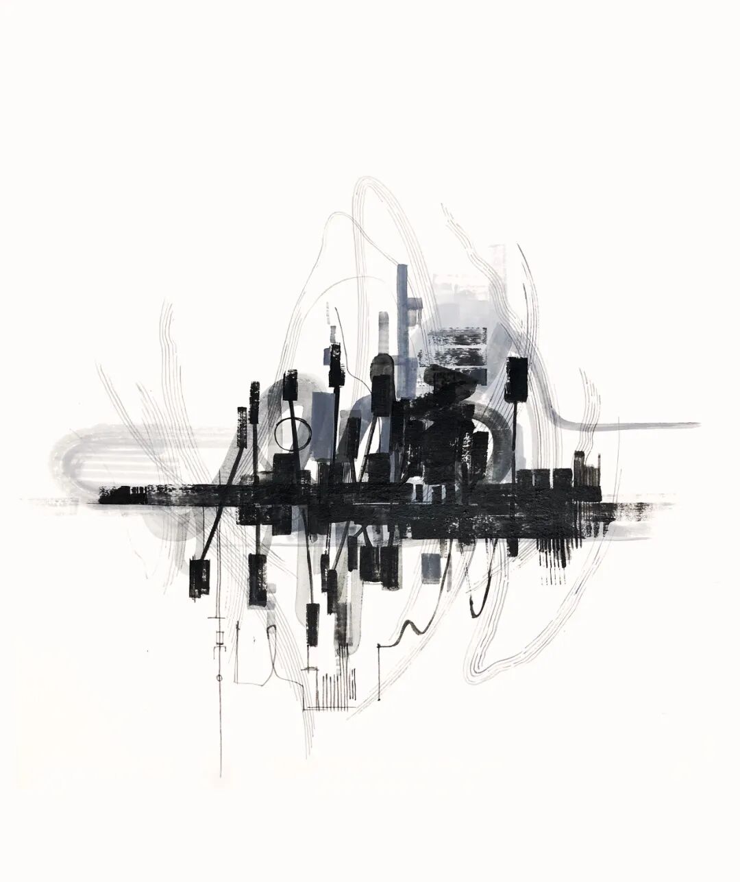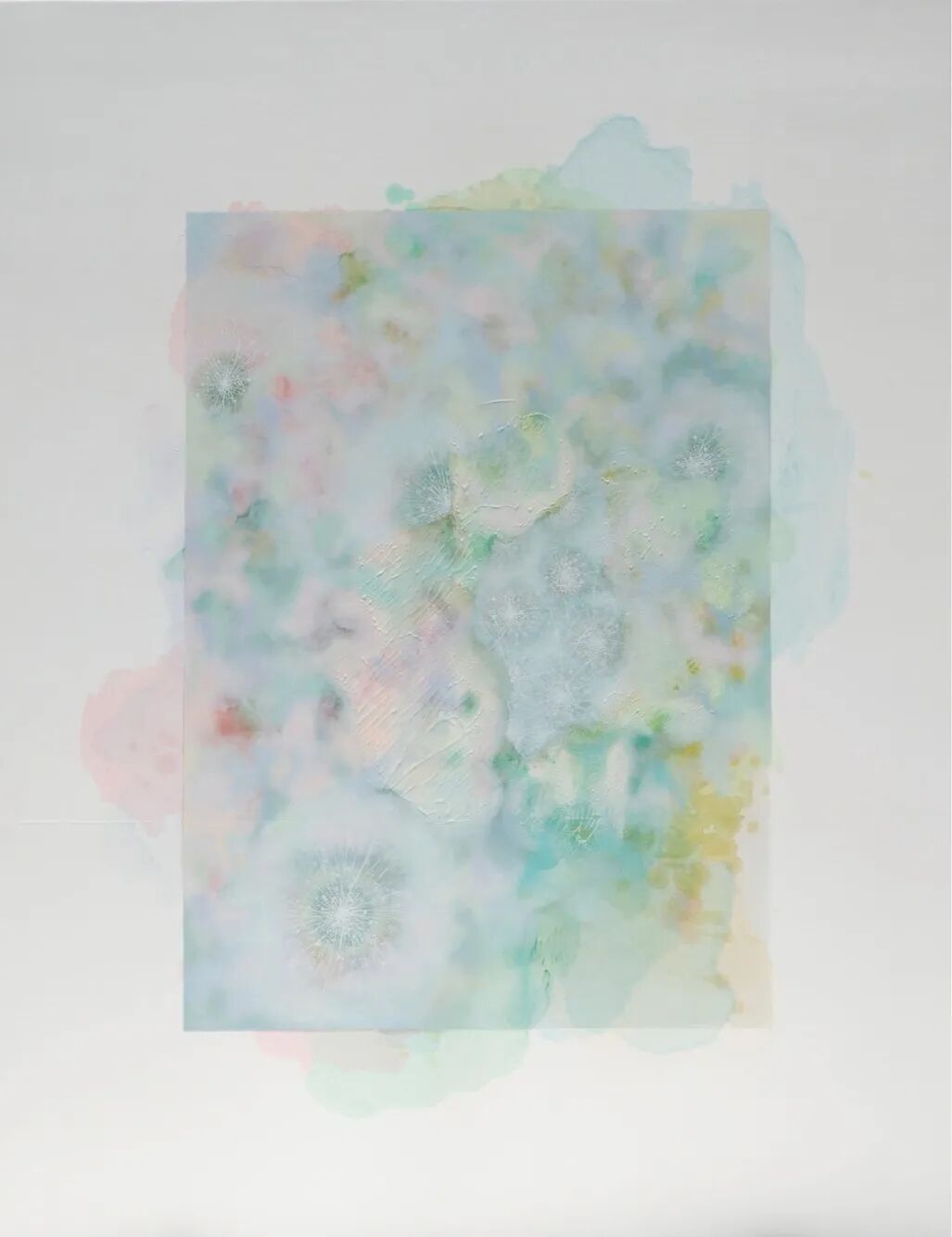 起初中村綾花画的是风景,后来她开始关注从风景中感受到的空气和情感。即兴的线条和材料的堆积代表着生的律动,表达着语言未诞生之前的感情。我们每个人都是一个渺小的生命,但生命的聚集,构成了这个庞大的宇宙。即使我们没有直接参与,存在于这个世界上的生命也创造了当下,我们是其中的一部分。