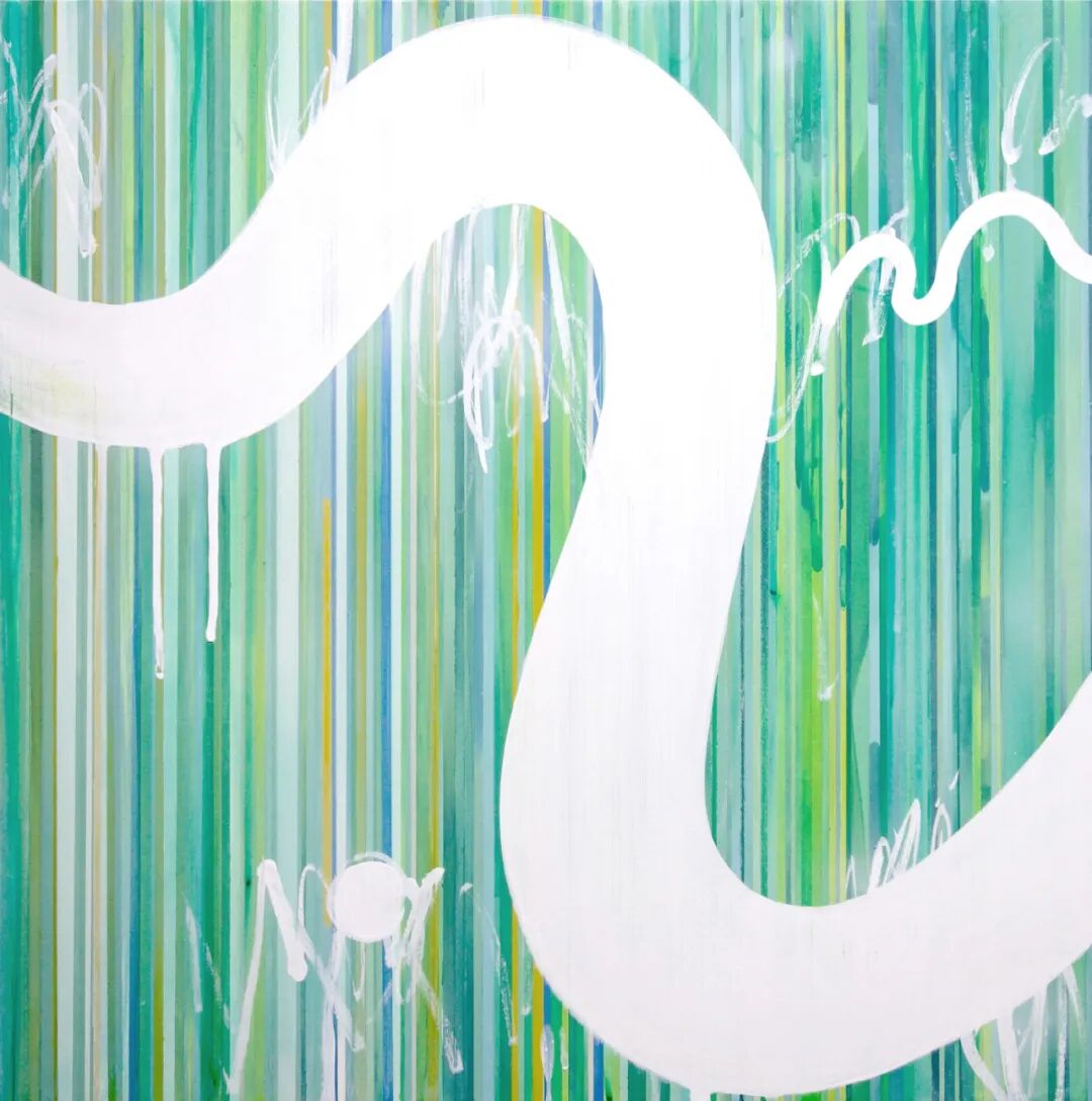 她说:”我以河流为主题作画。曾经有河的地方现在没有了,曾经没有河的地方却有了河,河流会随着人们的生活而变化。在这里,我感受到了乡愁,我将似乎可以凝固时间的白线和表达转瞬即逝的绿线组合在一起,构建出了连续的一瞬。