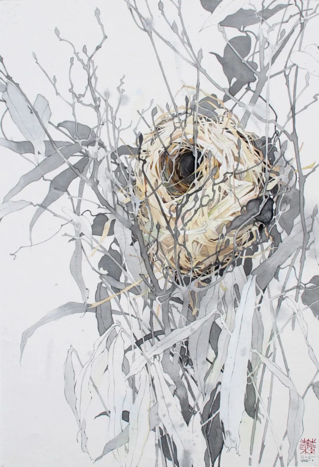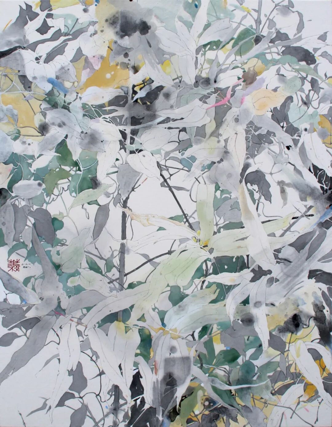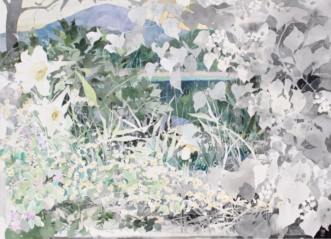 《草月》,91 × 65.2 cm,宣纸、墨、岩彩、水干颜料,2021