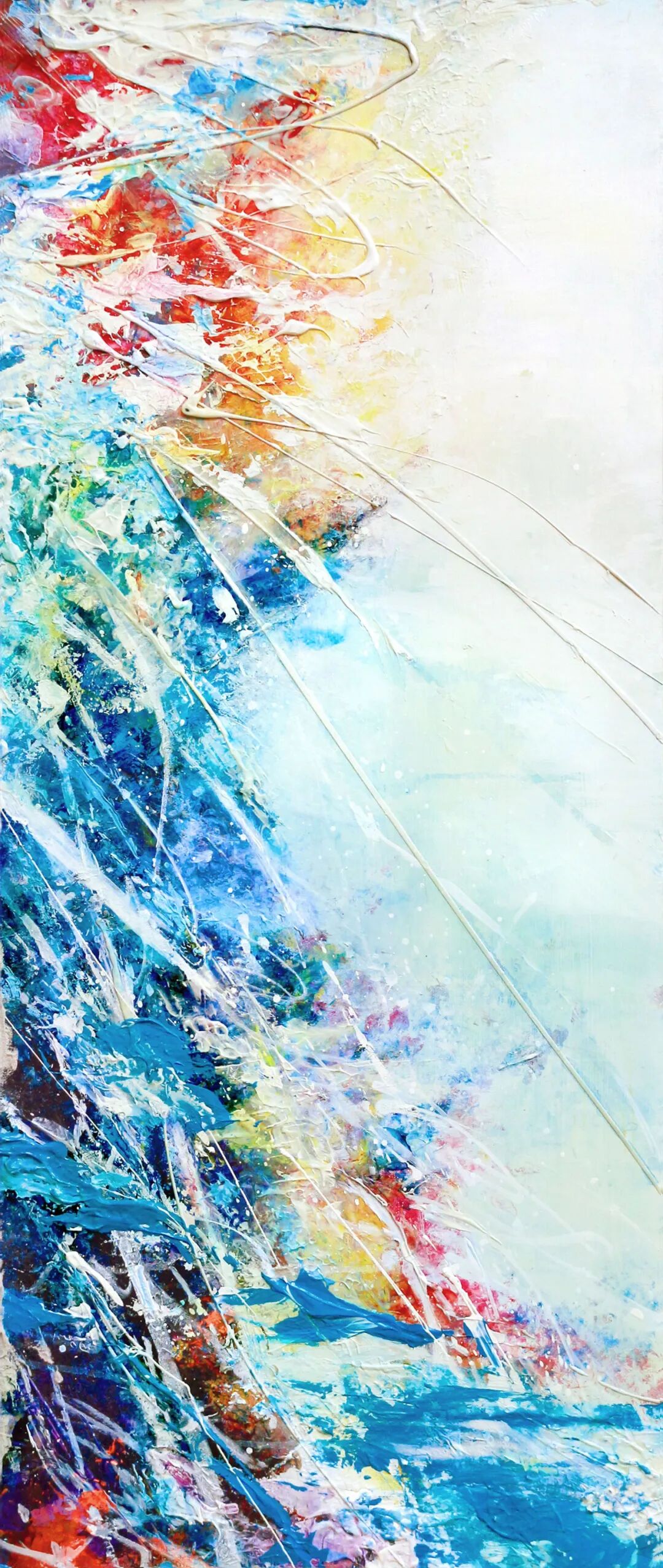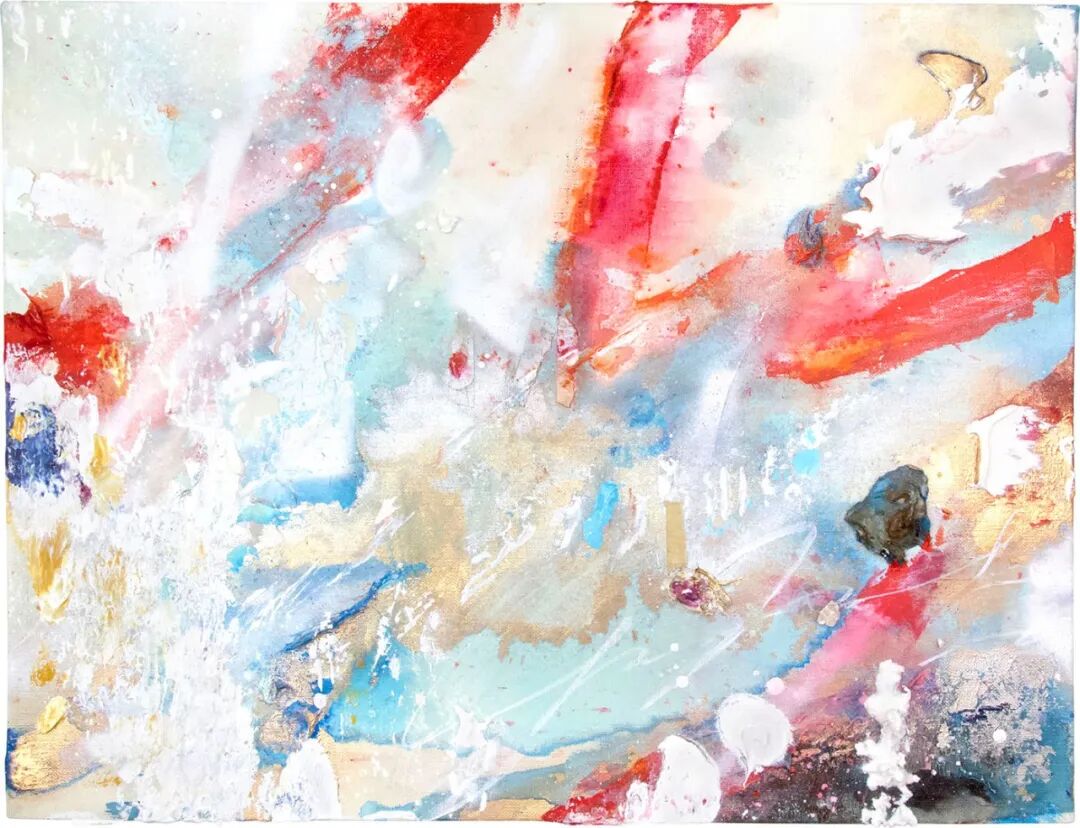 她作品里的抽象画面,像一条河水,像一座高山。你不能读出她的原意,却可读出她的喜怒哀乐。