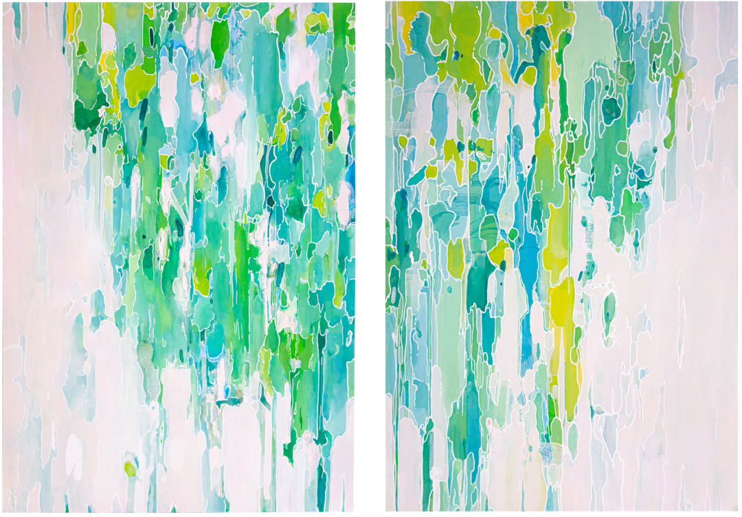 《河流的鸟瞰图》,83 x 57 cm x 2,木板丙烯,2021