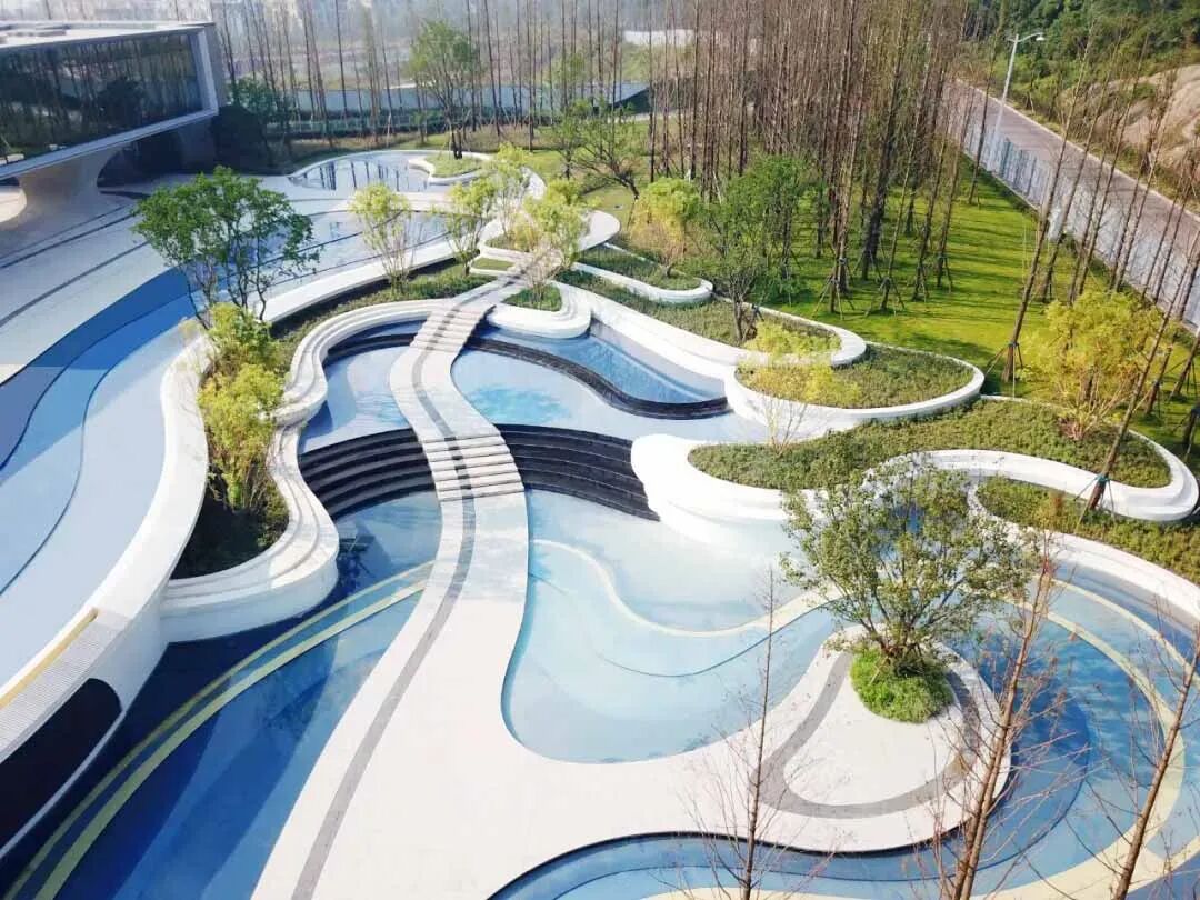 并将水景、密林、景墙与道路整体规划
