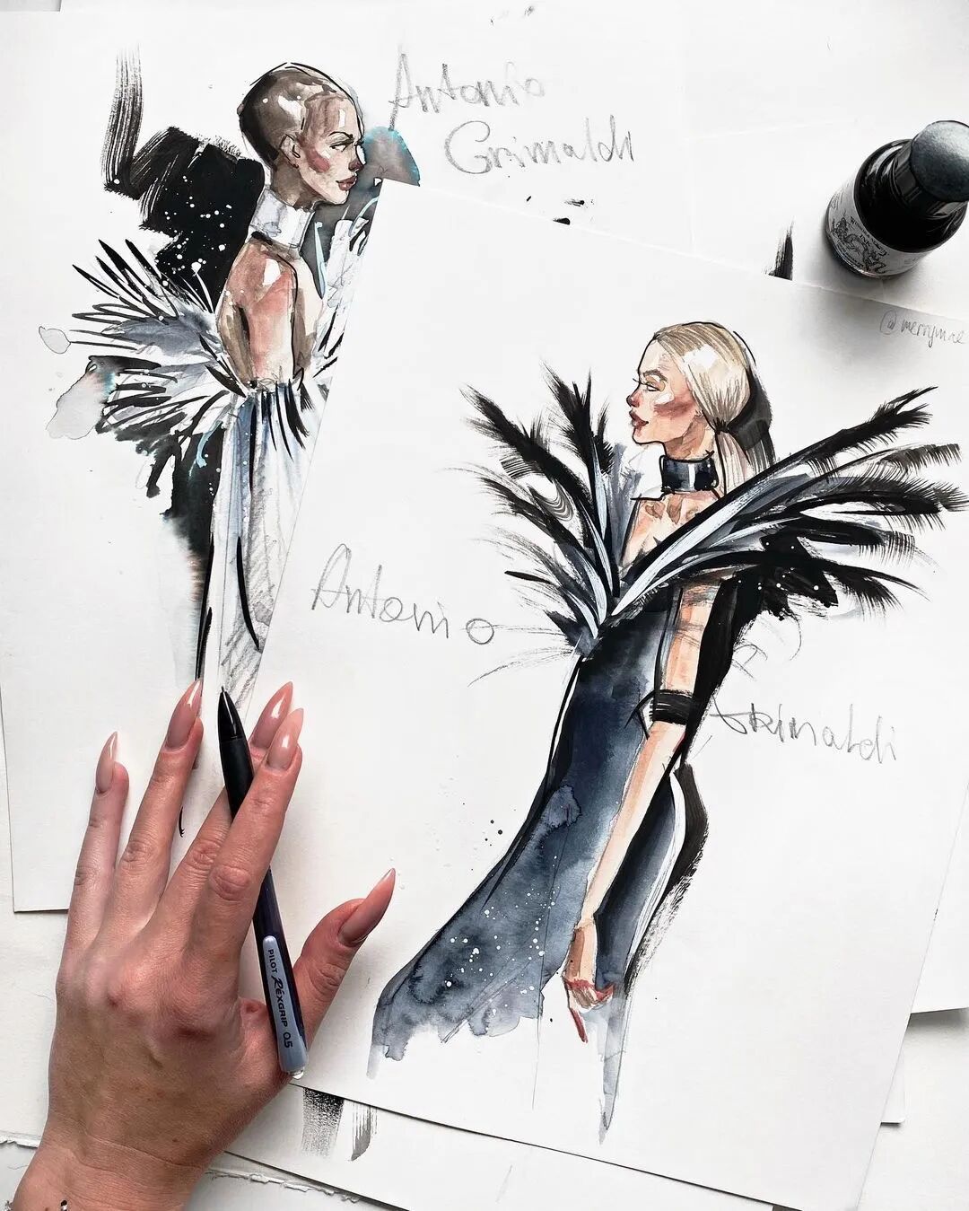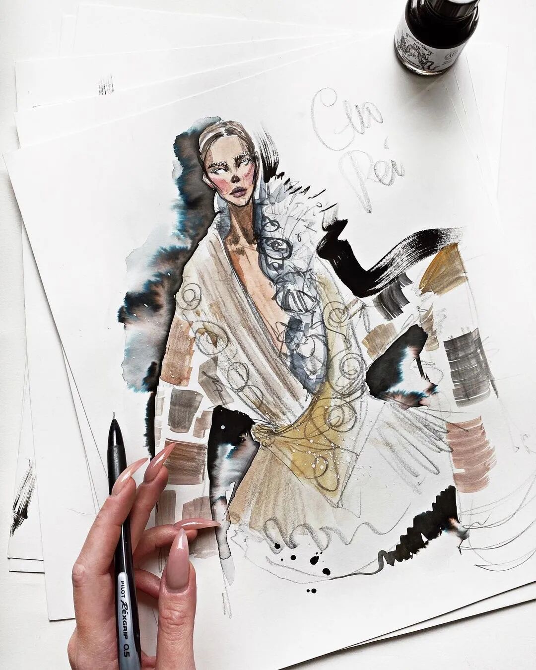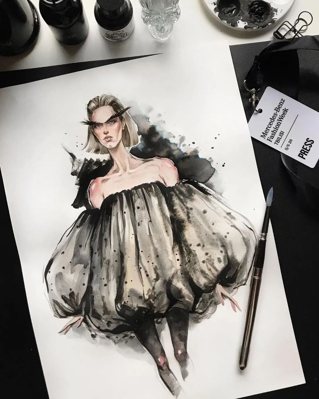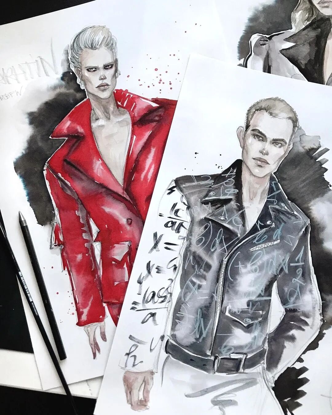 在Nastya Kuzmina录制的视频中,我们可以看到插画师每一次落笔都掷地有声,不拖拉又能找到清楚的痕迹。