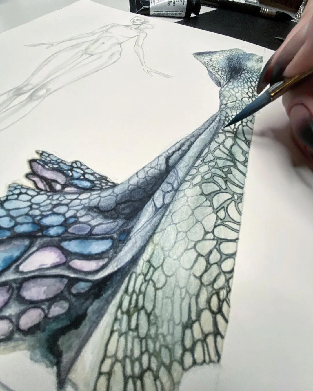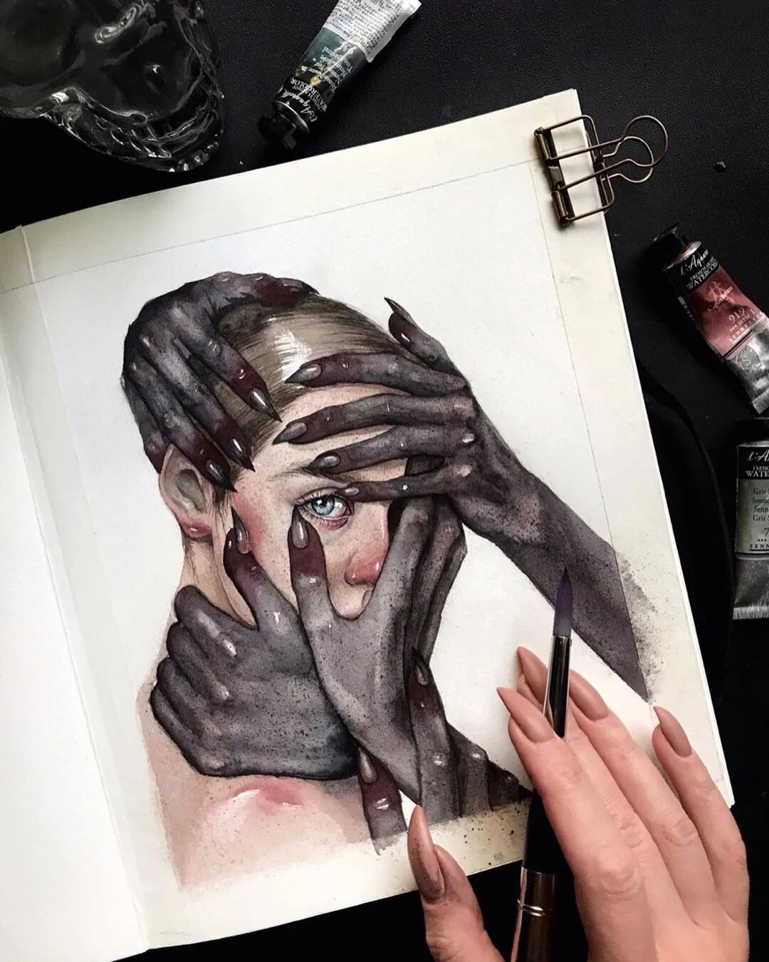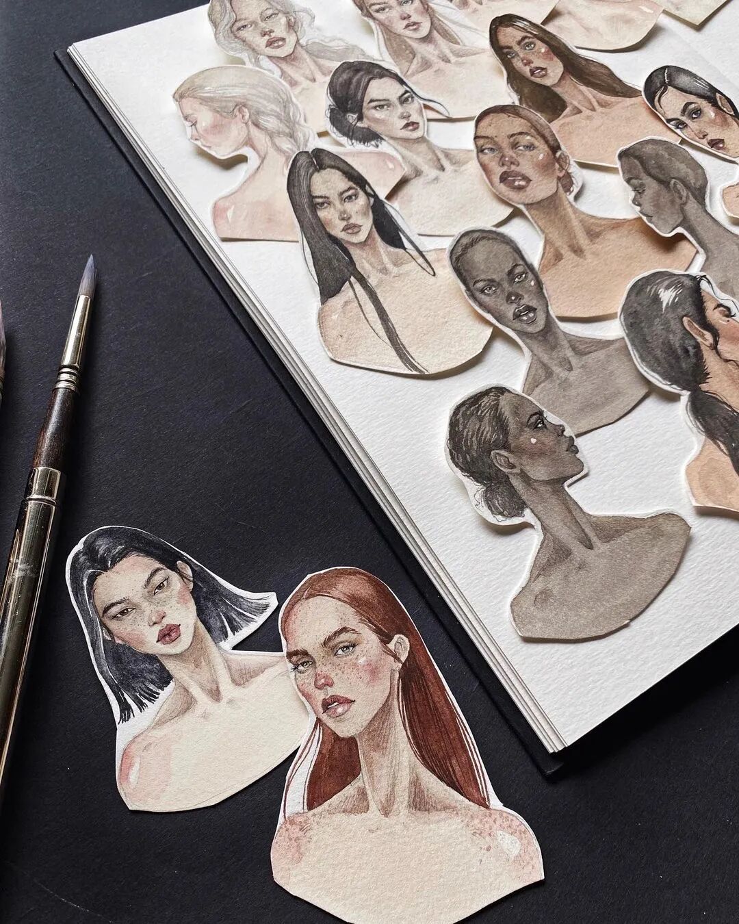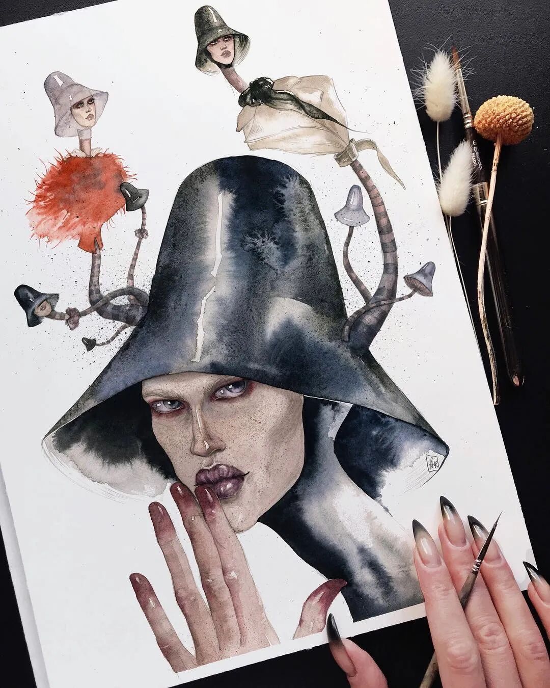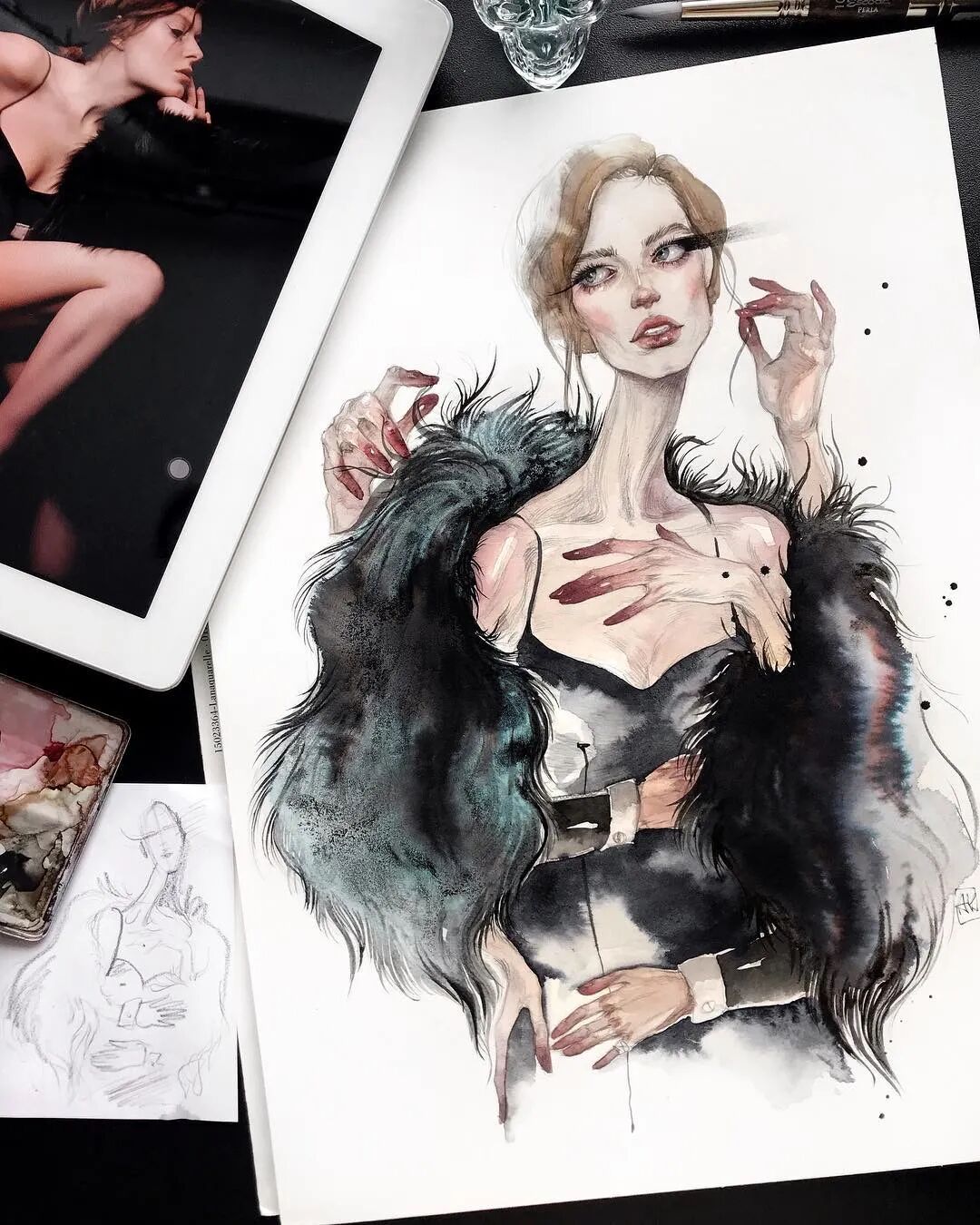 此时,水彩是Nastya Kuzmina最好的朋友,细致的晕染和精心的描绘形成对比,人们一下子就能感受到整个画面的重点。