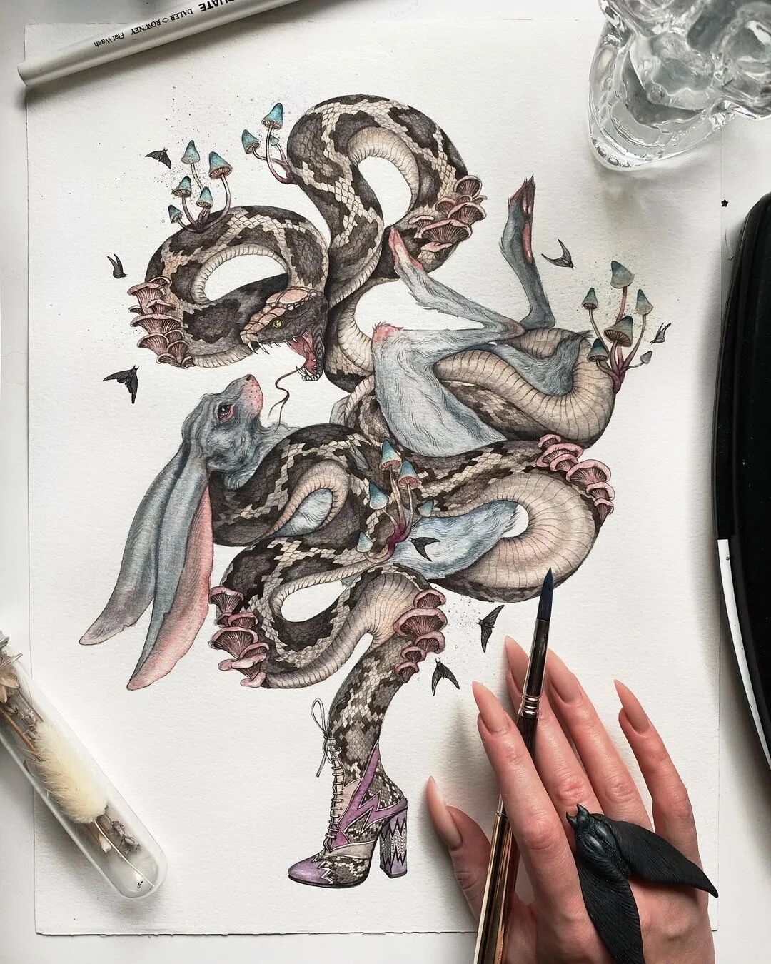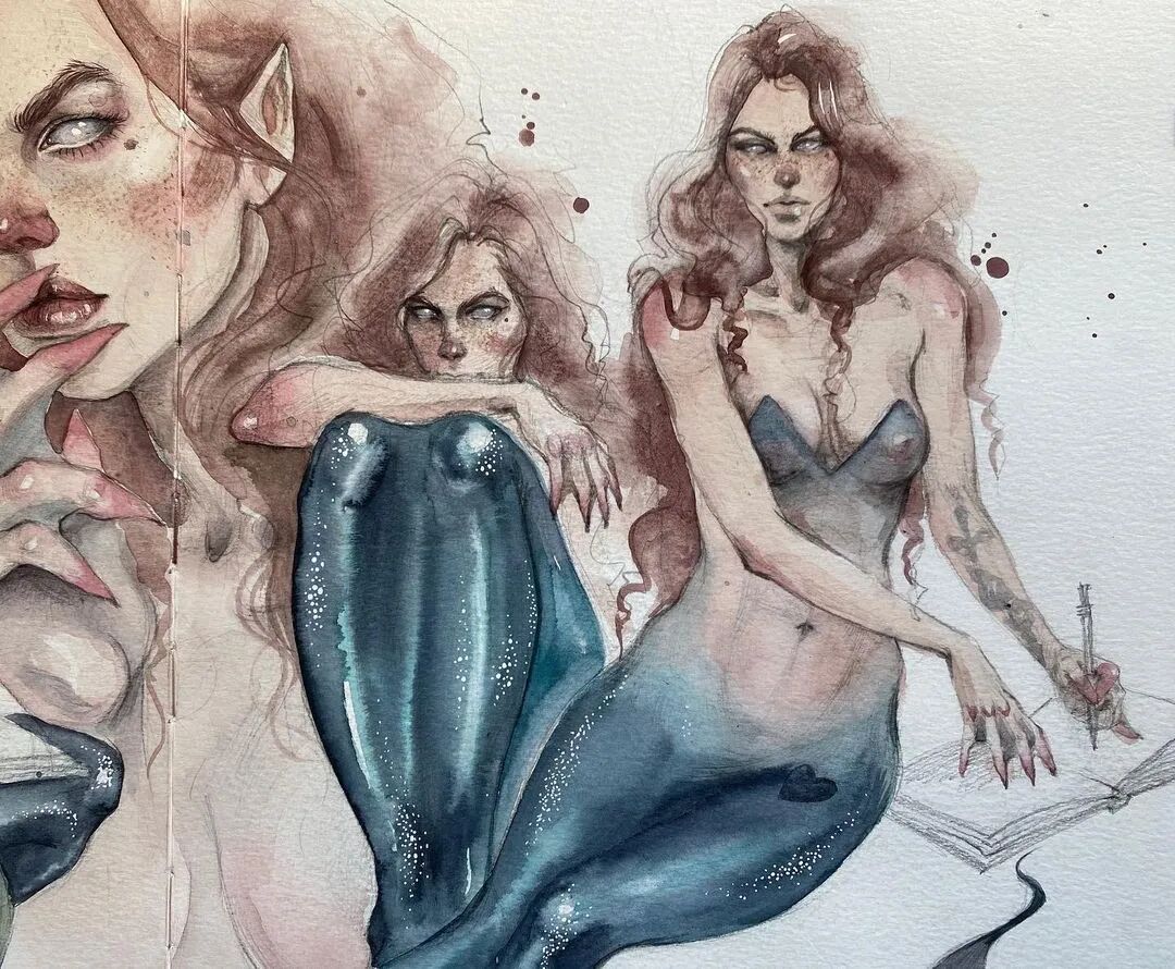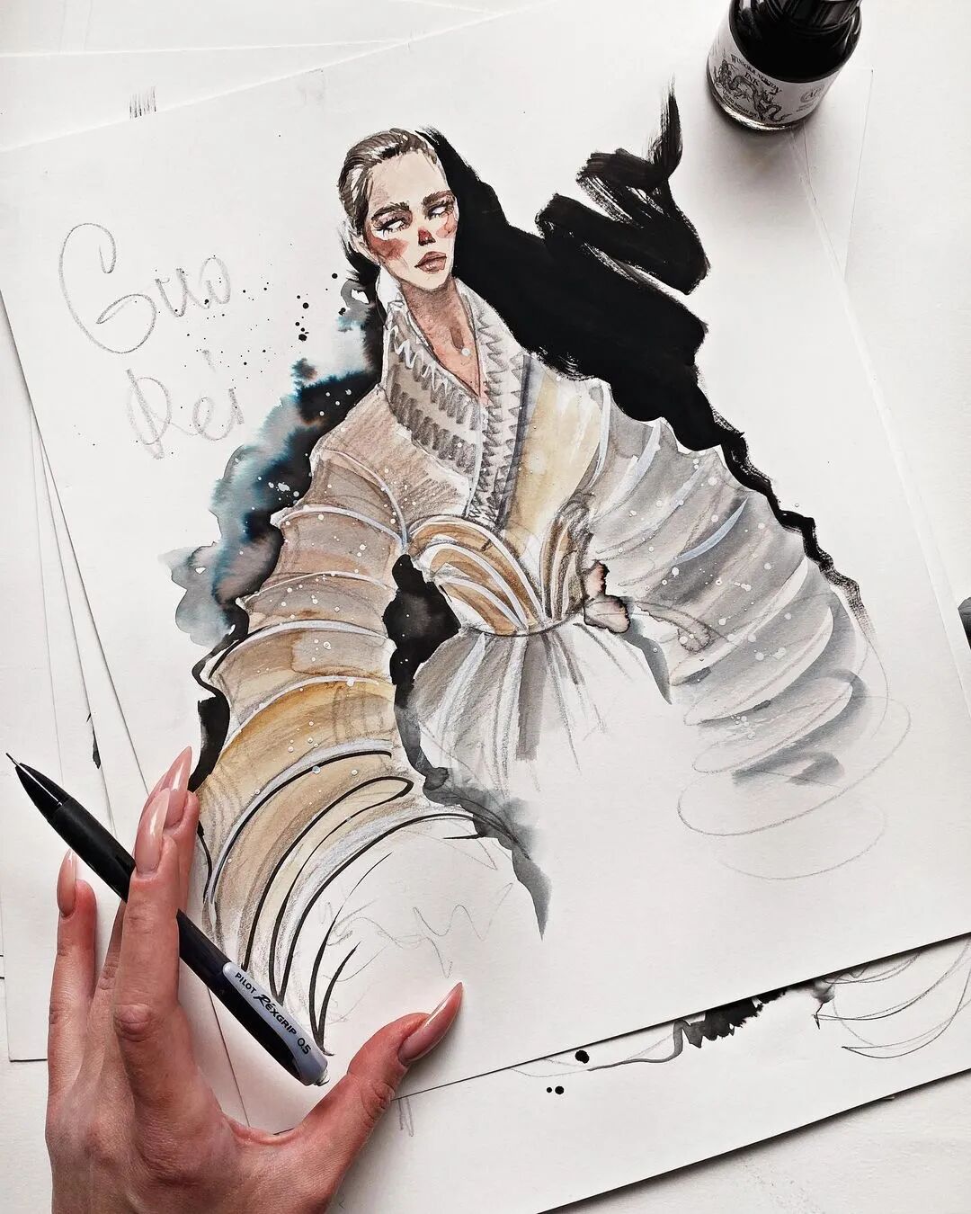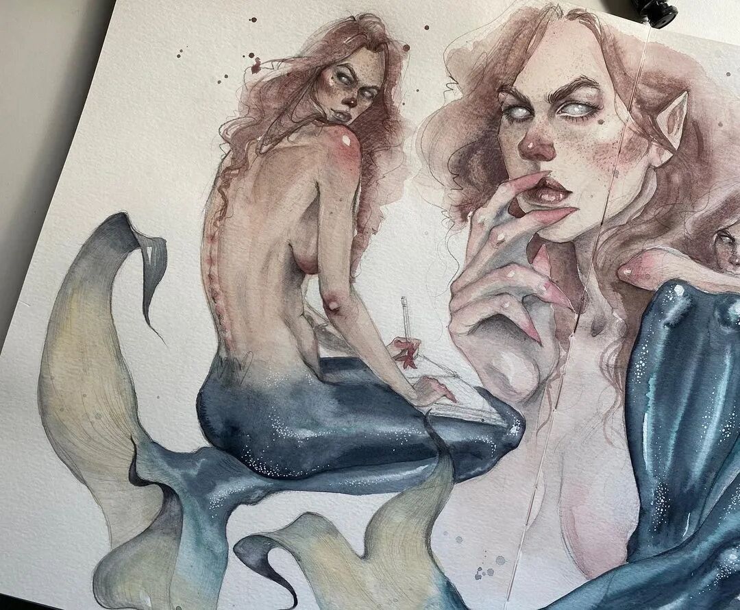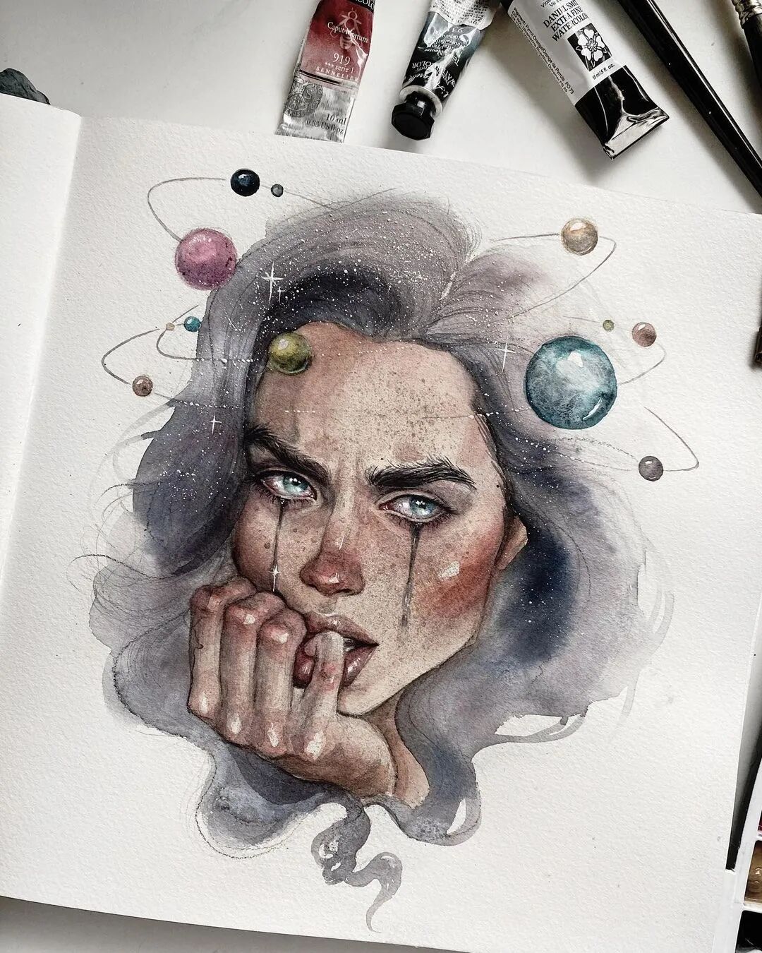 此时,水彩是Nastya Kuzmina最好的朋友,细致的晕染和精心的描绘形成对比,人们一下子就能感受到整个画面的重点。