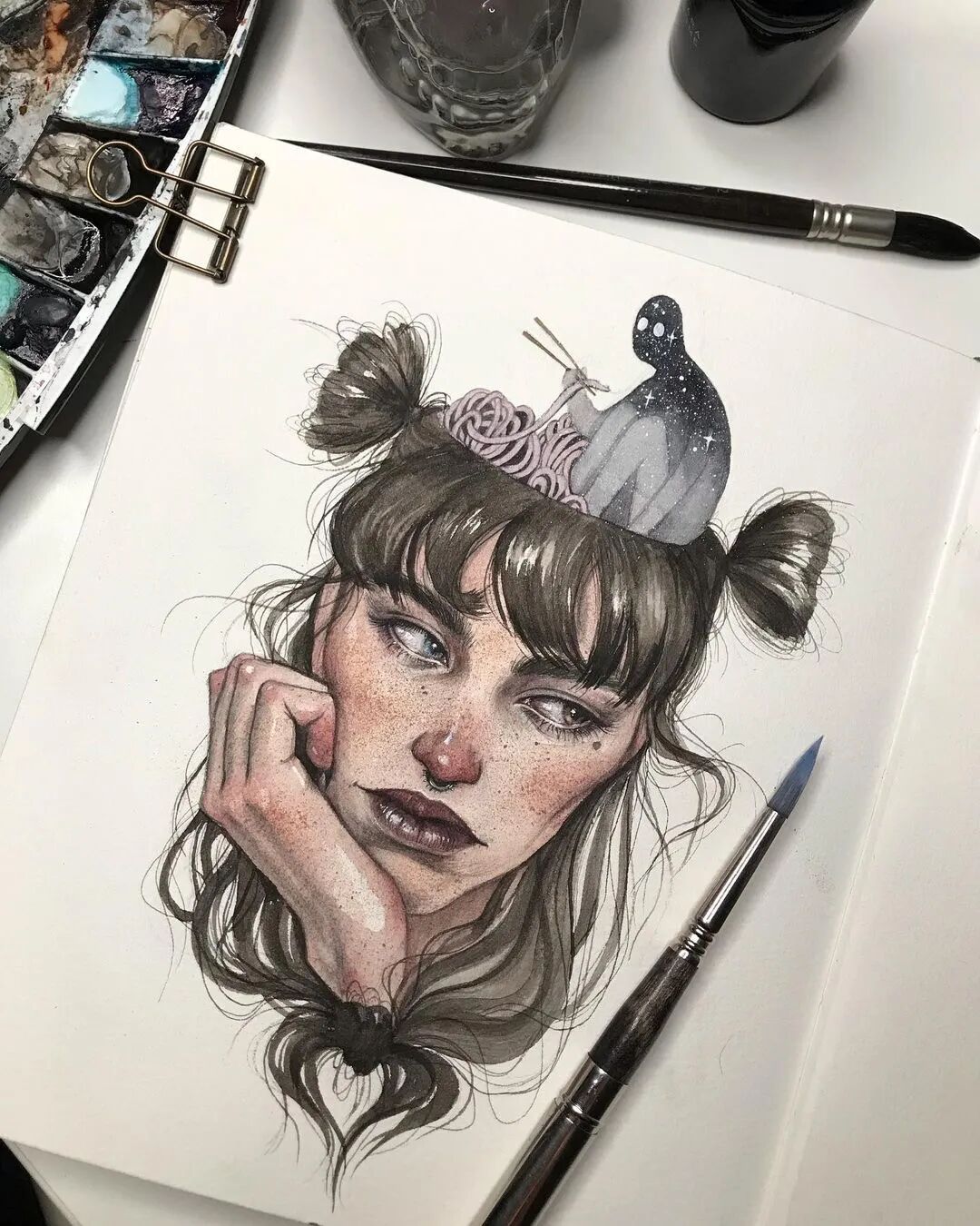Nastya Kuzmina来自俄罗斯(Russia),是一名插画艺术家。出于对艺术的热爱她开始对周围美的事物进行记录,独特的画风让更多的人记住了这个奇奇怪怪的女子。