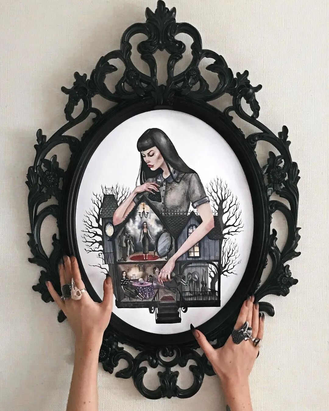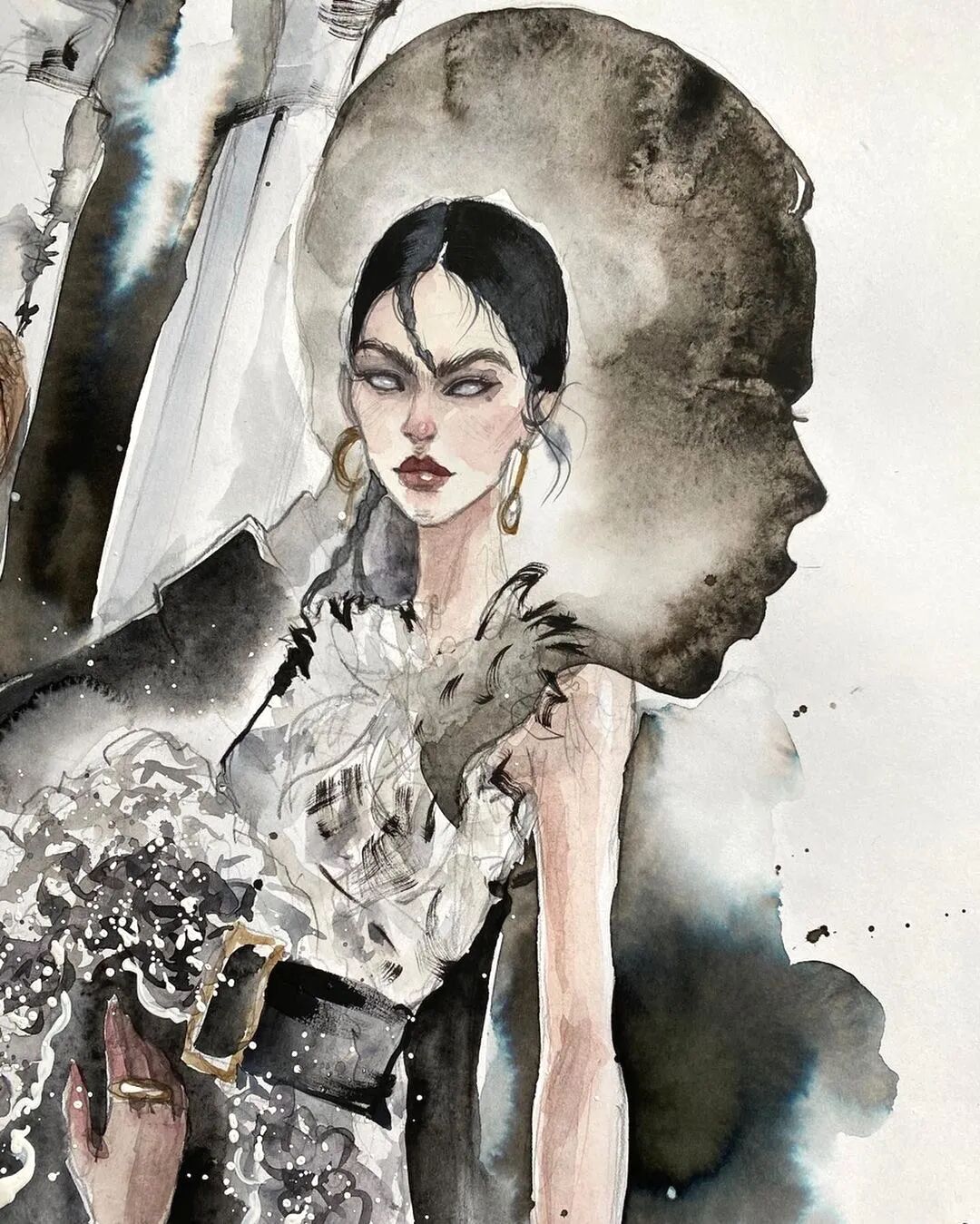 之所以Nastya Kuzmina能让插画的整体风格看上去哥特,是因为她对于色彩的选择偏重,深色且低饱和的塑造,仿佛让人物置身于阴霾之中。
