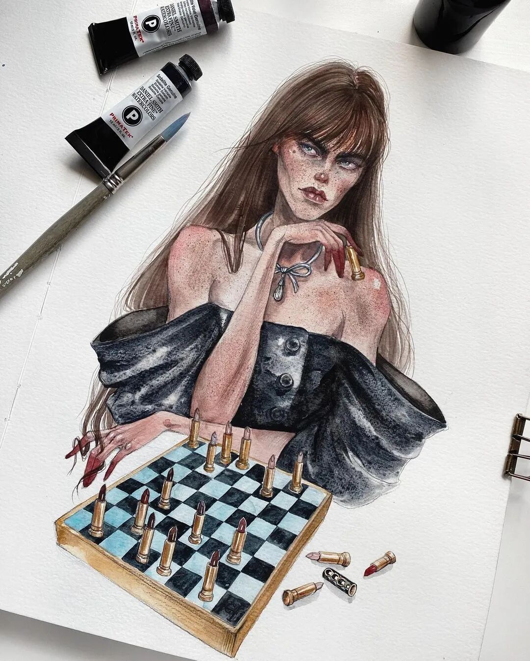 Nastya Kuzmina的作品隐藏着的张力显而易见,不断的进行技术上的进步才是其取得更多关注的杀手锏,对比Nastya Kuzmina的早起作品,人物的线条更加流畅,色彩的调和更加自然。