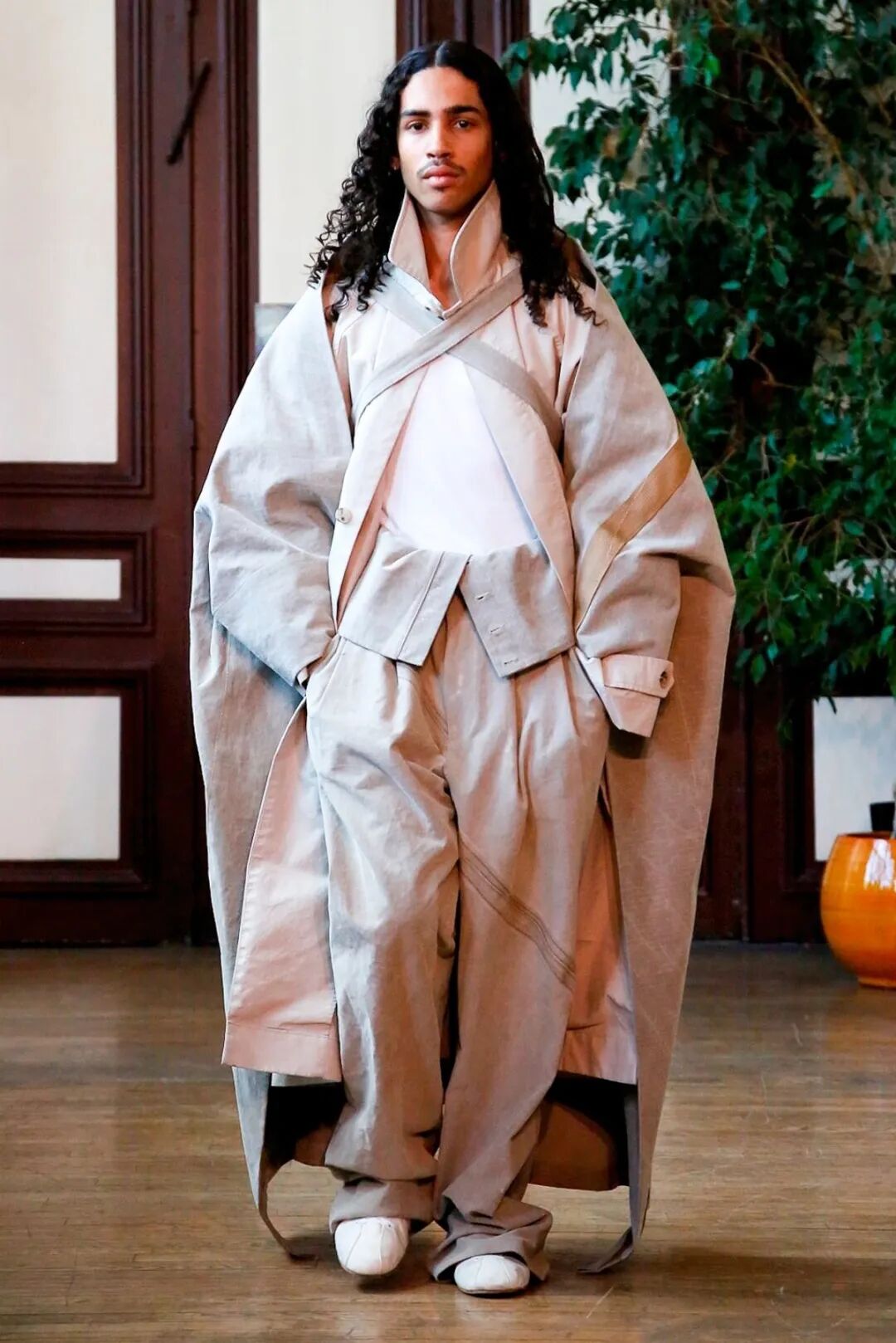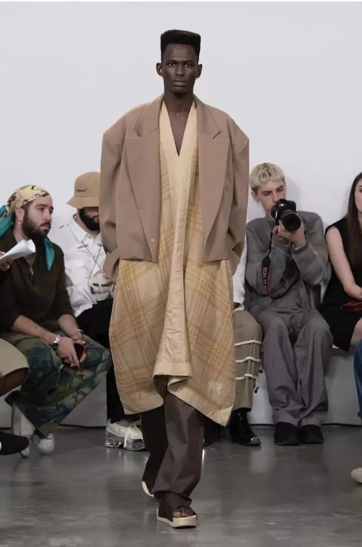 能在Hed Mayner的设计中感受到中东宽松服饰对其设计的影响,其中还融合了自由流畅的现代感元素,Oversize的随意的感觉融合了自然的韵味。