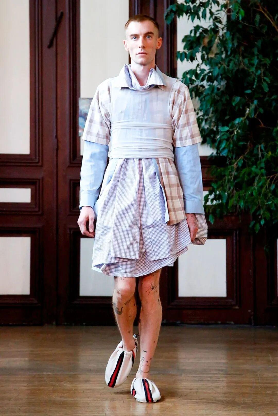 对服装的自由度是Hed Mayner想表达给人们的,心灵上与身体上双重的放飞,让「刚柔并济」在一套Look中得以重生