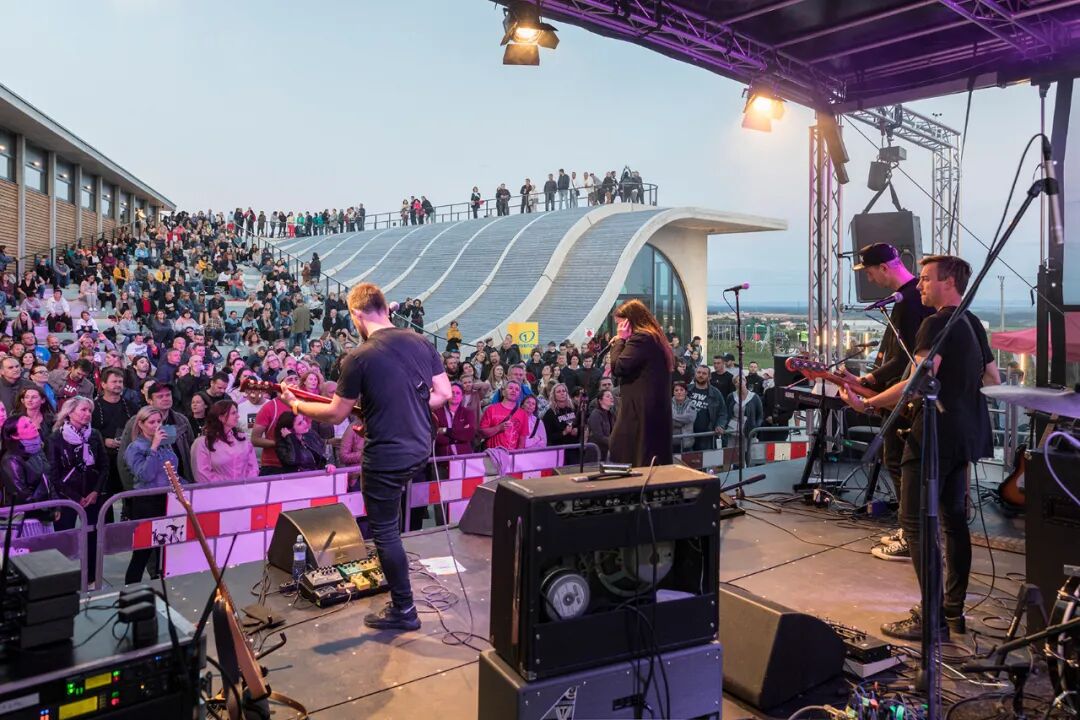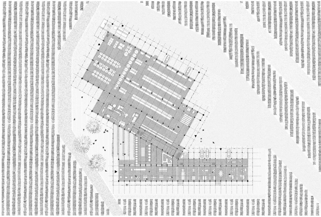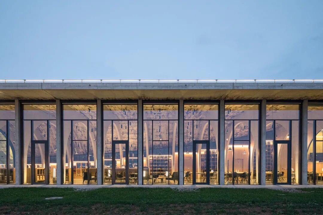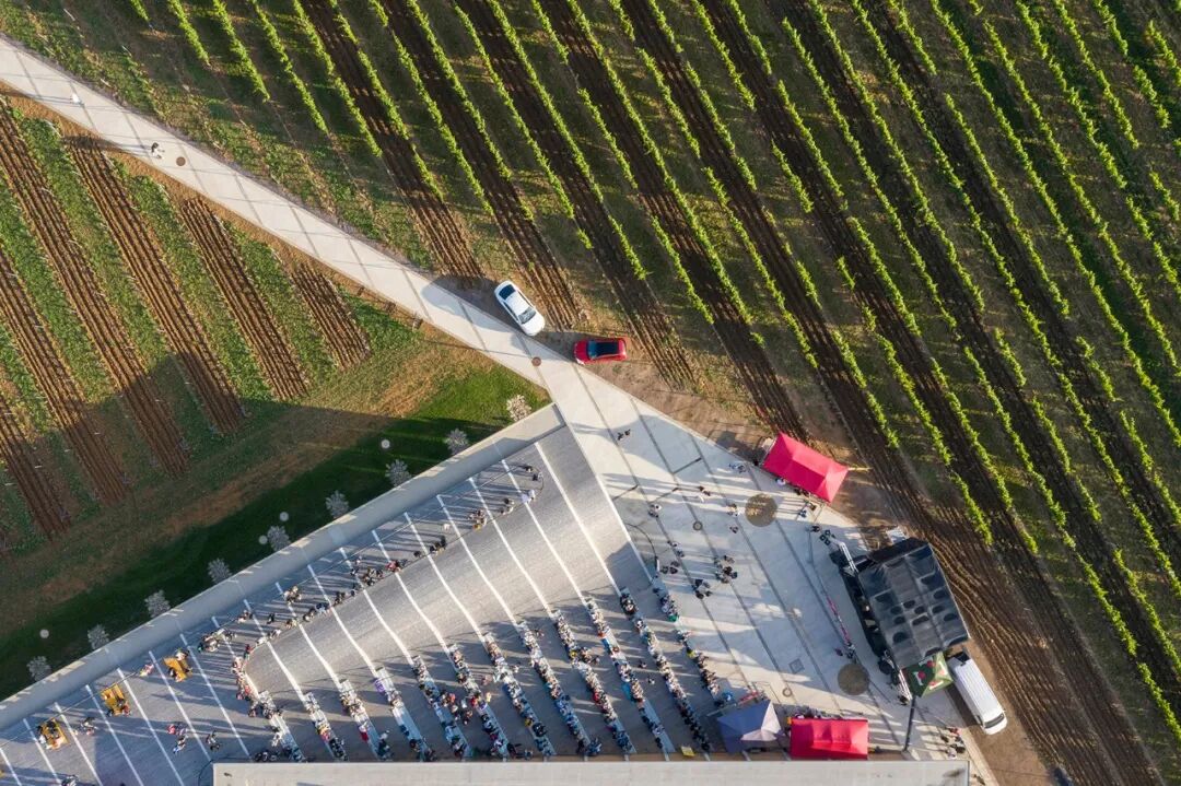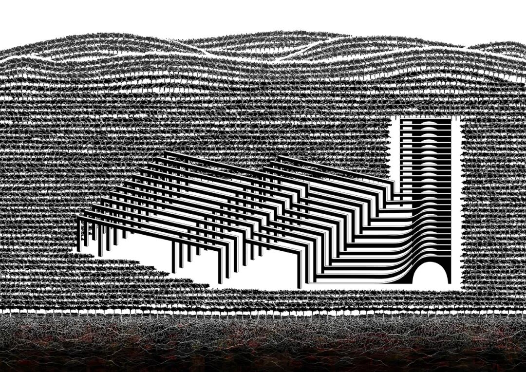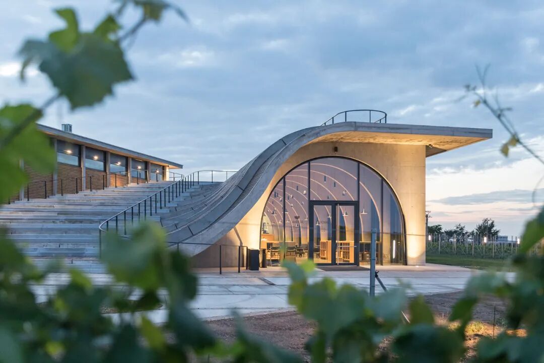 室内的拱顶模仿该地区典型的酒窖,位于成排的拱形梁之上。波浪形的屋顶被用作露天剧场,与酒窖的弧线相对应,举办文化活动时,对当地人和游客开放,使酿酒厂融入其所在的土地与文化之中。