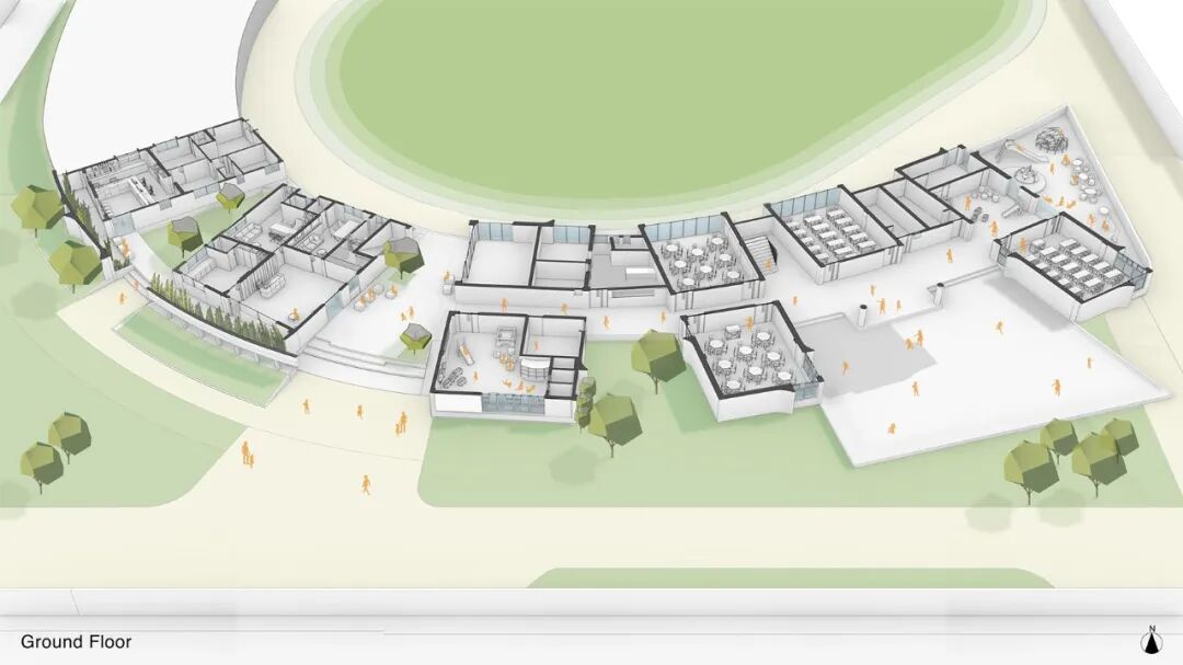 建筑外立面的浅灰褐色墙体正巧顺应周围土壤的颜色,旨在将墙体的风化“伪装”起来,令建筑更好地融于自然环境。