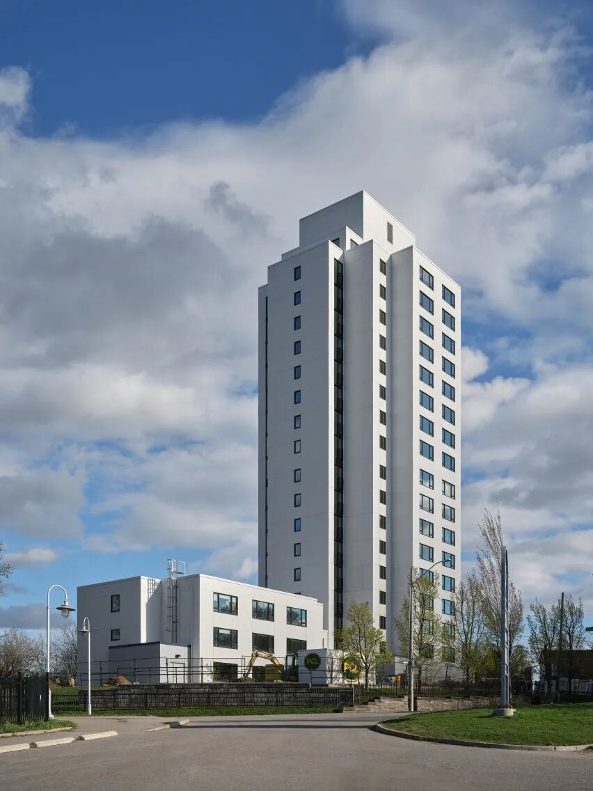 ERA建筑事务所使用北美制定的欧洲被动式房屋(Passivhaus)能效标准,翻新安大略汉密尔顿的一座1967年的战后社会住房建筑肯索布尔塔(Ken Soble Tower),使其成为世界上获得Passivhaus EnerPHit 认证的最大住宅建筑。
