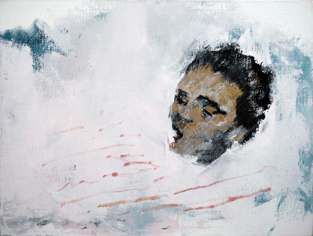 幸存者01(难民突发事件),2021,布面丙烯、色粉笔,80 x 60 cm