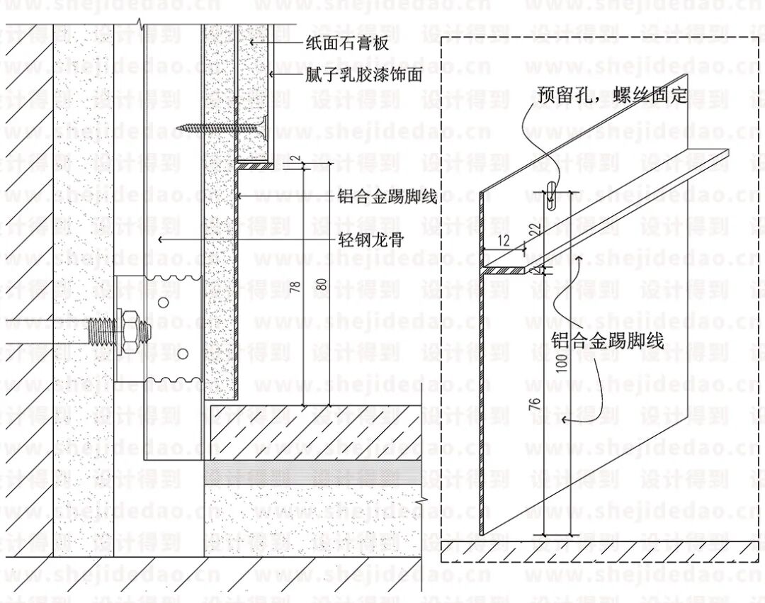 嵌入式暗藏踢脚既能收口又能保护墙面,颜值也贼高