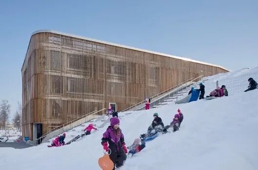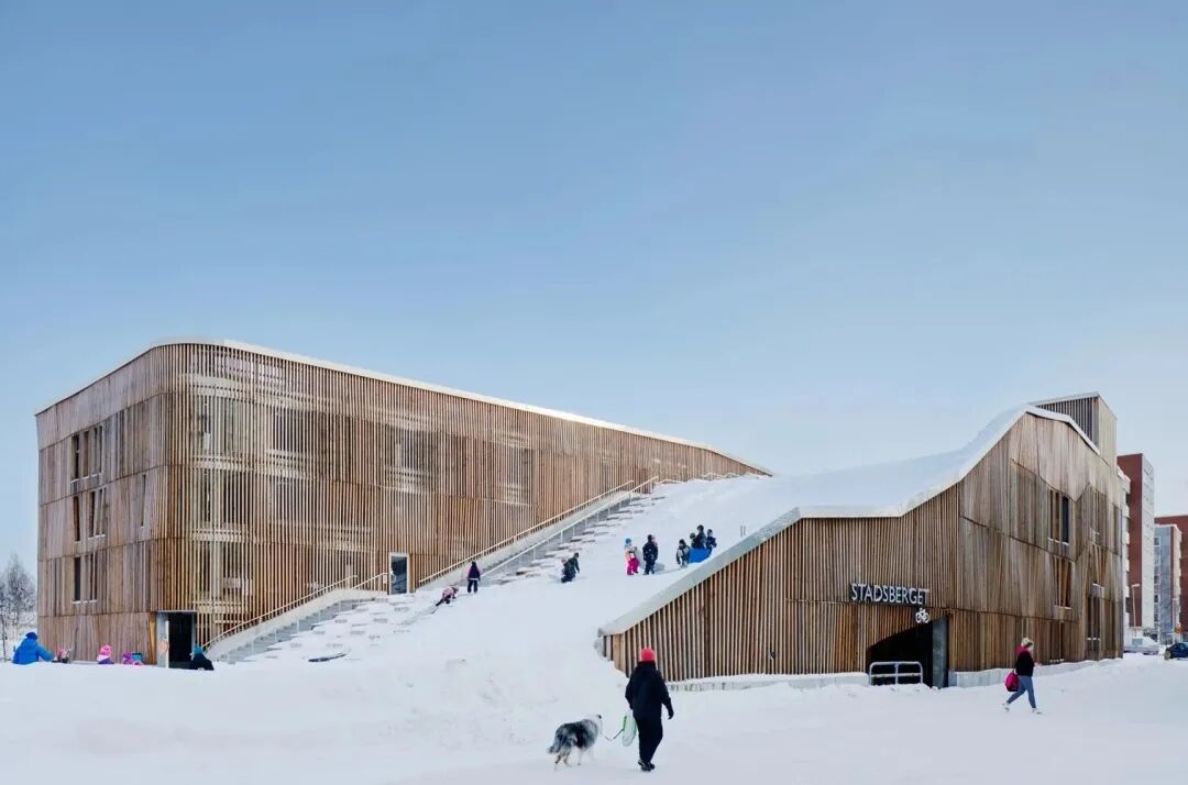 瑞典的皮特奥市是位于北极圈下约130公里的地方,在这里建成了一个车库,同时还有一条滑雪山坡,露天剧场和一座“大灯笼”形建筑。