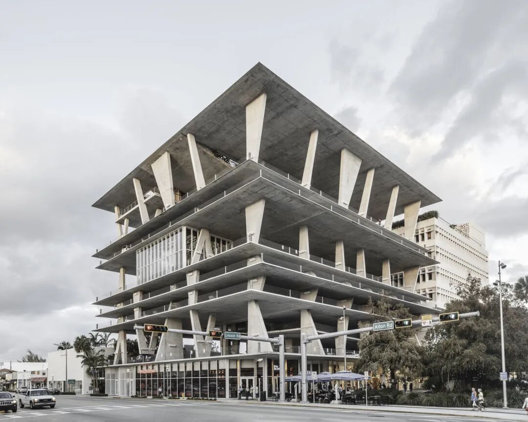 在迈阿密海滩上,新开发的混合使用用途的林肯大道1111号,由四组不同的建筑组合而成。这座极具表现力的停车场是其中之一,也成为了迈阿密海滩至迈阿密市中心之间的一个标志性建筑。