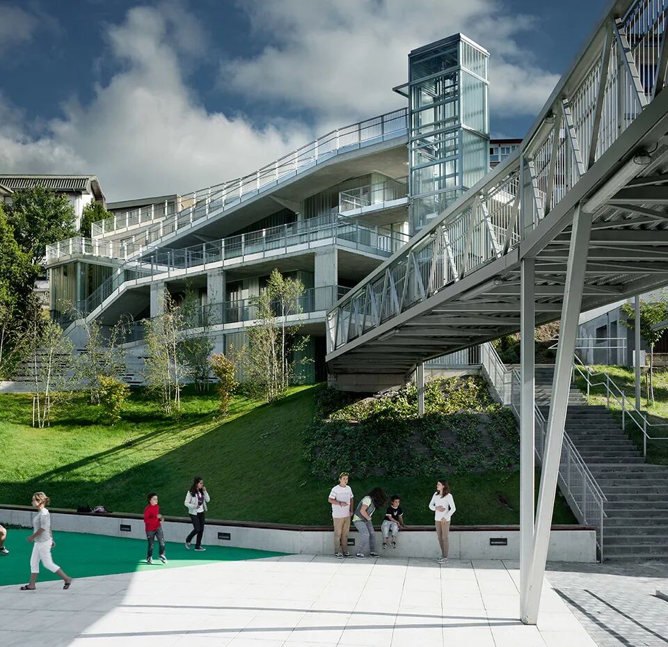 周围居民可以通过坡道和楼梯,参观建筑的外部周边,穿过公园的坡道和楼梯也使相邻建筑的交通具有连续性。