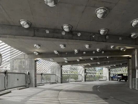 车库是一个完全开放的混凝土结构。为了适应其他永久性或临时性的项目,停车场天花板介于标准高度的二倍或三倍之间