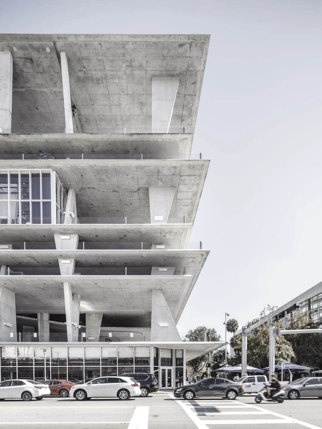 设计师并没有试图隐藏停车场的结构,而是希望以暴露的结构打破建筑立面的尺度,将美丽展现在人们面前。