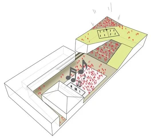 人们可以在起伏的山丘上停车、会面、欣赏音乐会或者举办周末社交活动,会有充满美感的空间体验。