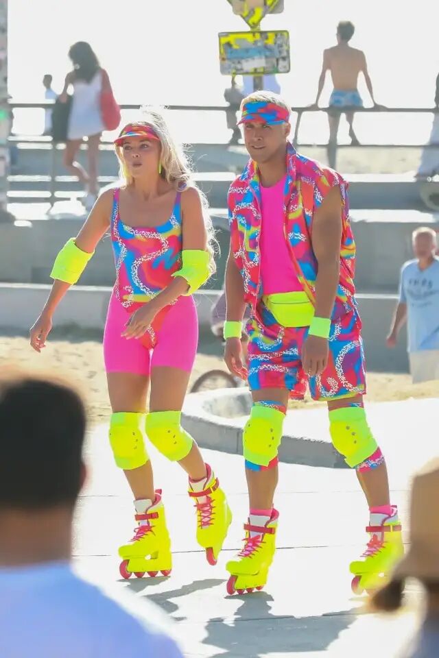 和废土风形成鲜明反差的,是芭比风。废土风有多灰败荒凉,芭比风就有多浮夸耀眼——说刺眼也可以。瑞恩·高斯林在真人电影《芭比》中的扮相曝光时,大家还直呼辣眼睛,但紧接着,芭比风就势不可挡地席卷了时尚圈和穿搭界。