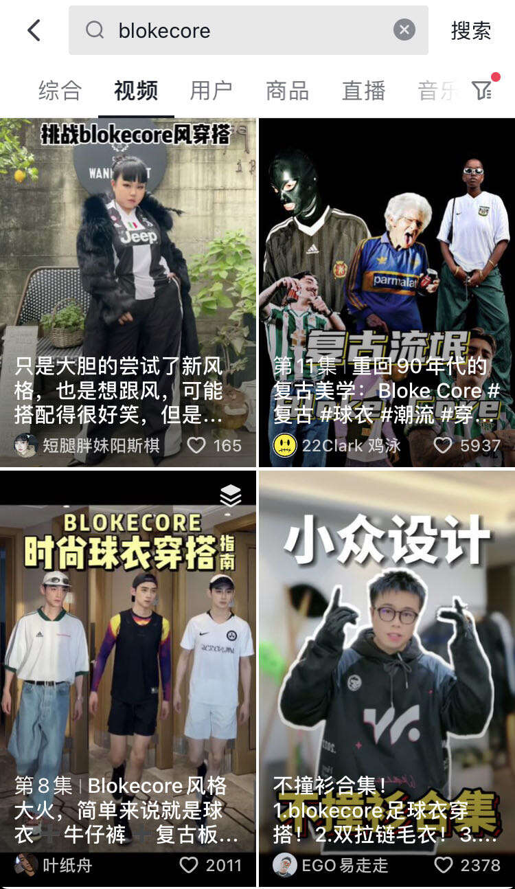 小红书上,“blokecore”标签下有2800+篇笔记,而将俚语“bloke”打错成常用词“block”的“blockcore”下也有1300+篇笔记,还有自媒体煞有介事地解释道:“如果从词源来解,block 一词源于足球文化,意思是阻挡;而在英国俚语里,block 指的是阳刚的男人。”看错了词,还得想办法自圆其说。