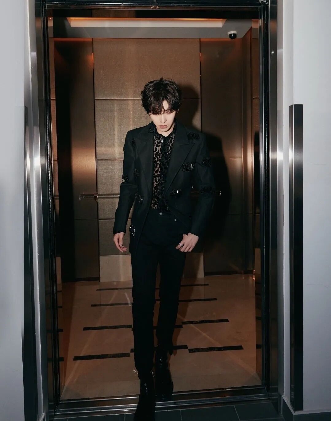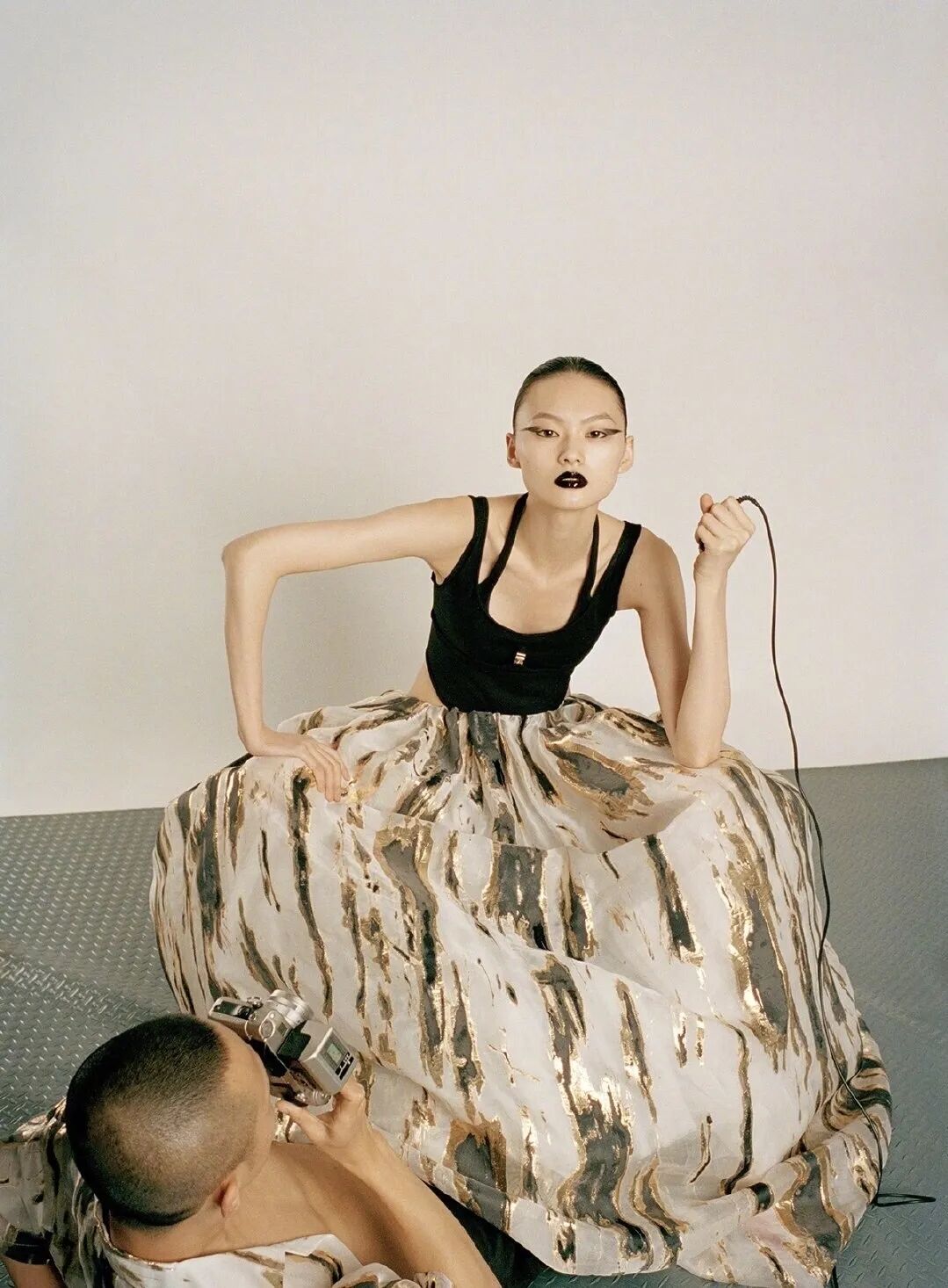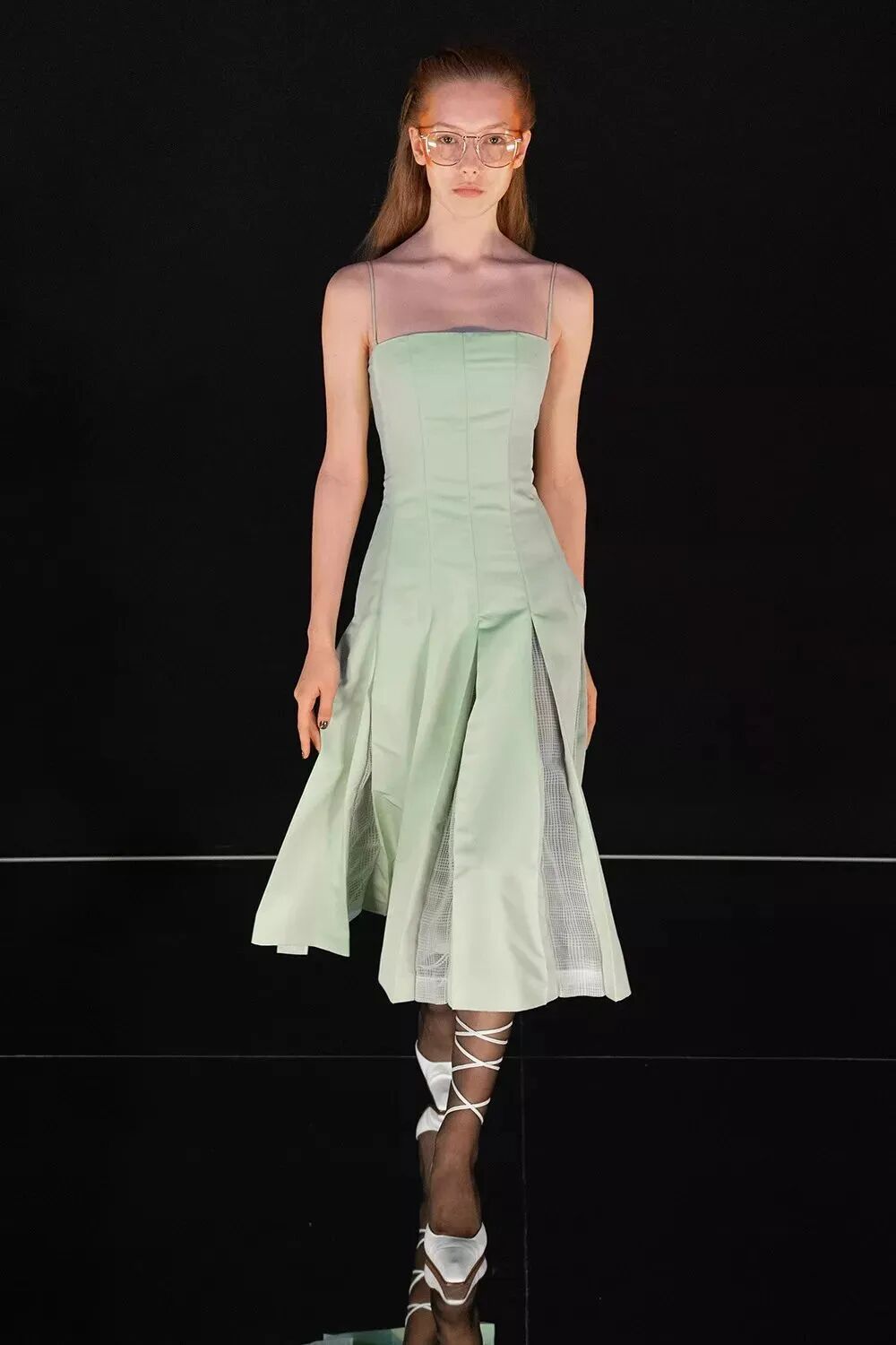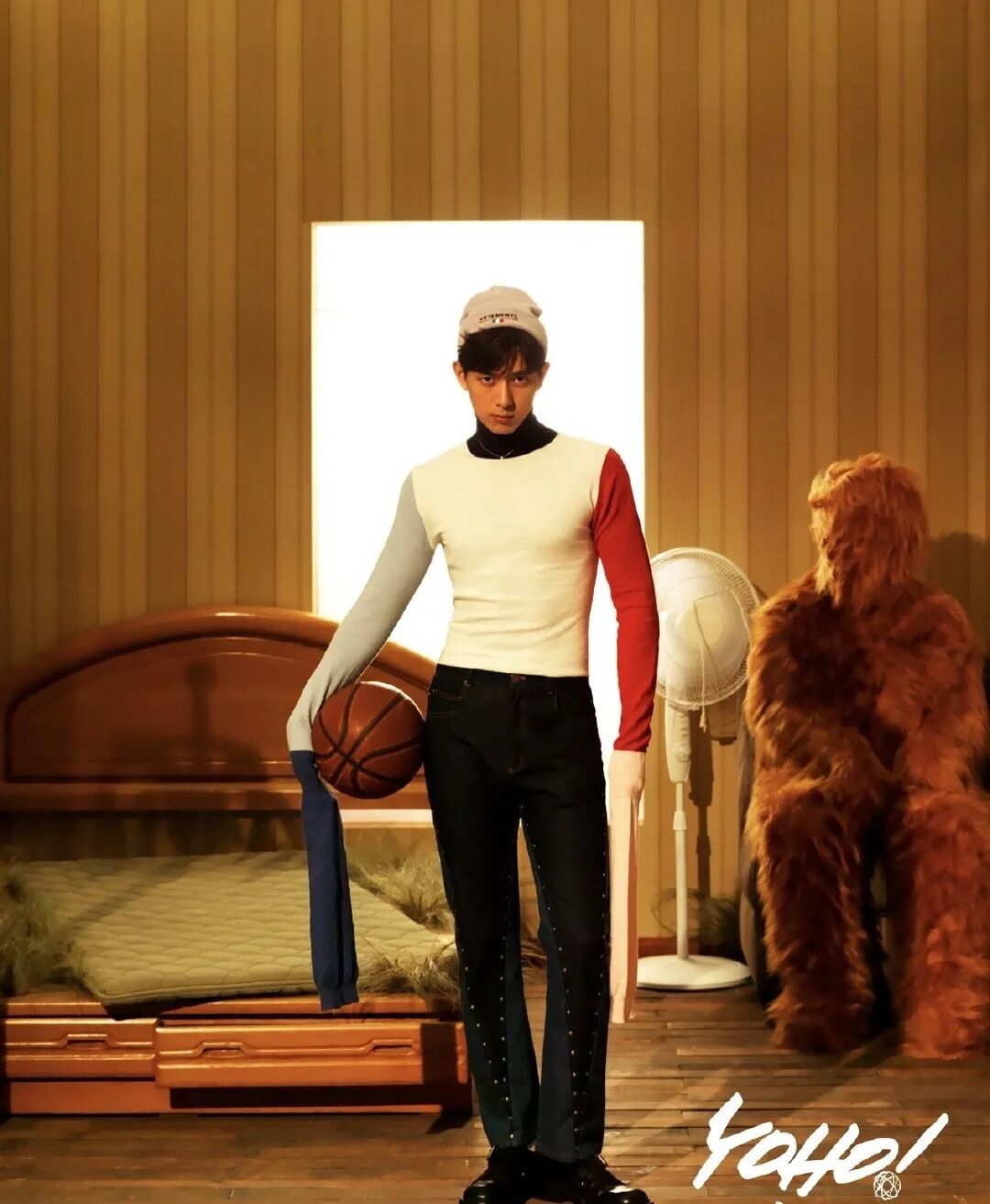 透视的网眼与胸衣装饰宣誓着年轻一代反叛的力量,带有标志性的丹宁与经典法式波点的结合,又好比一场纽约与巴黎、次世代与传统的隔空对话,诠释者CALVIN LUO的桀骜气质。