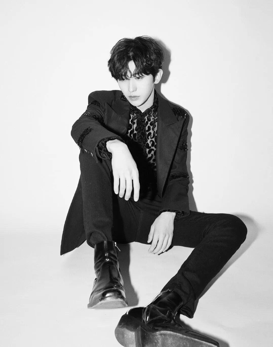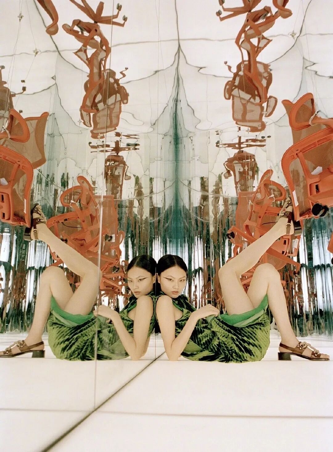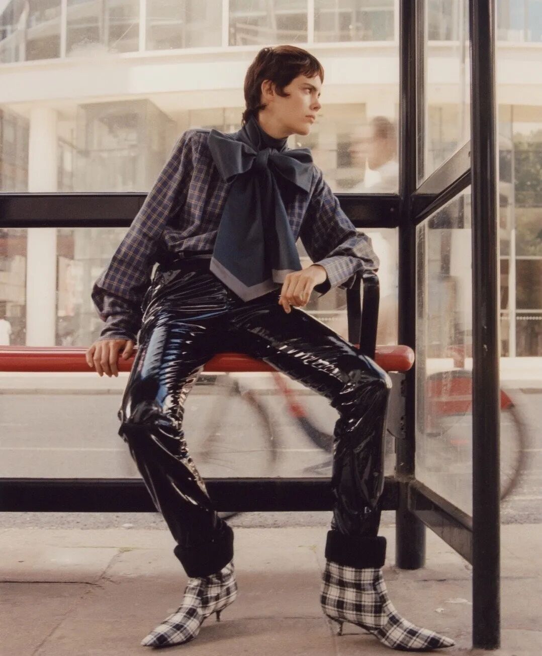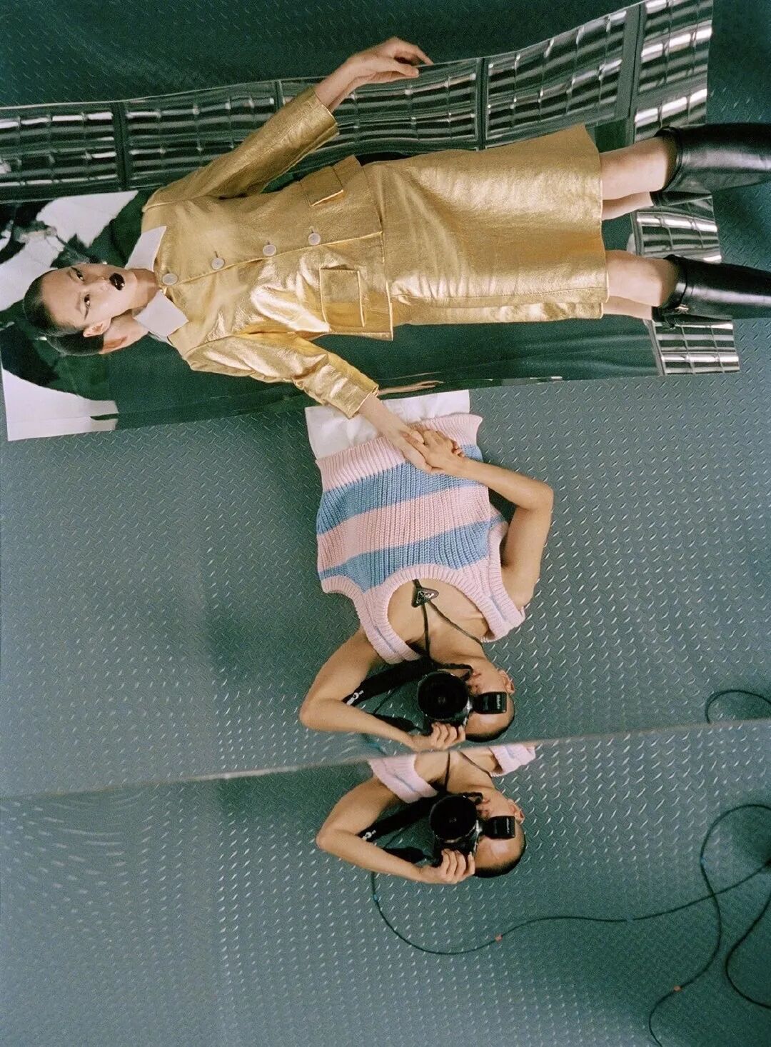 透视的网眼与胸衣装饰宣誓着年轻一代反叛的力量,带有标志性的丹宁与经典法式波点的结合,又好比一场纽约与巴黎、次世代与传统的隔空对话,诠释者CALVIN LUO的桀骜气质。