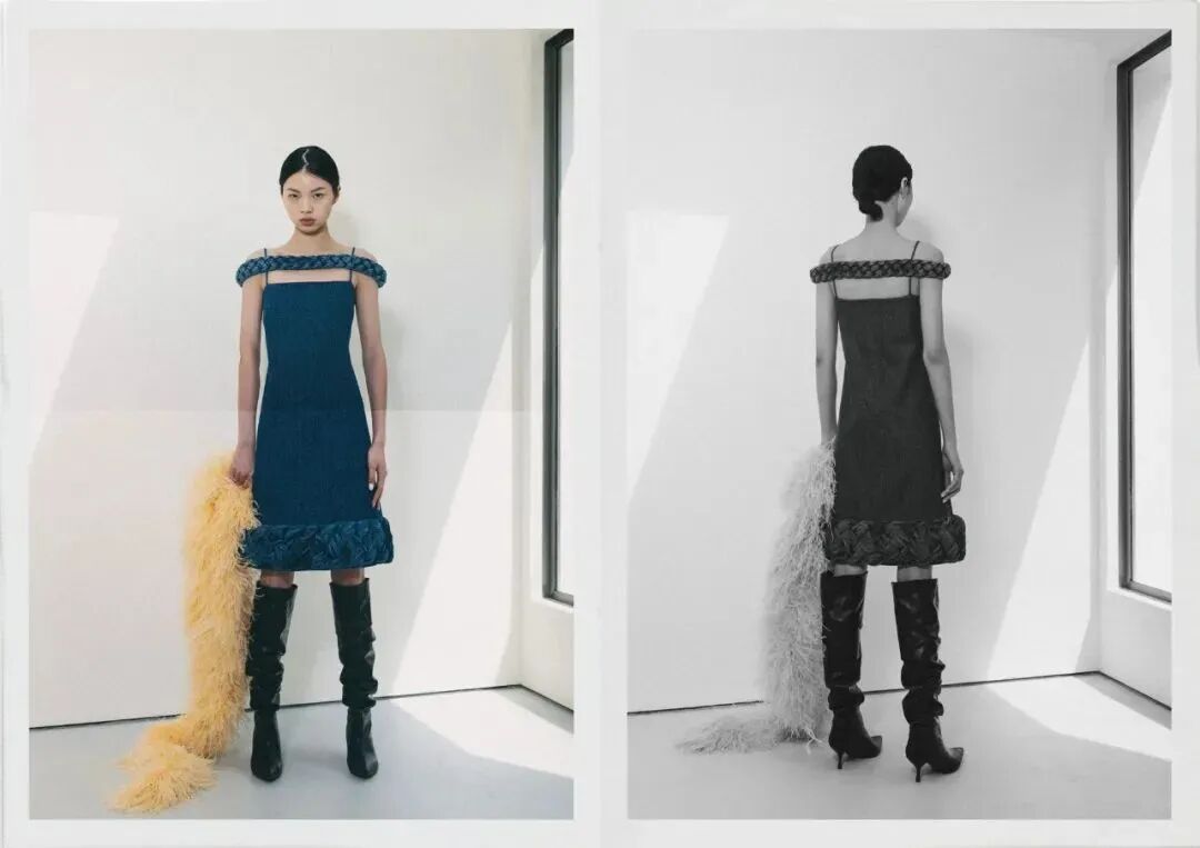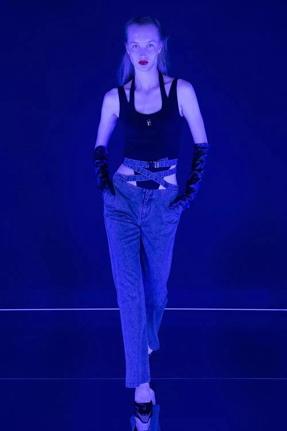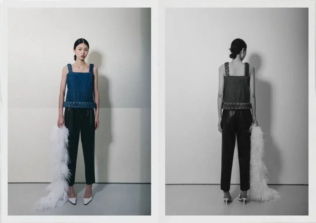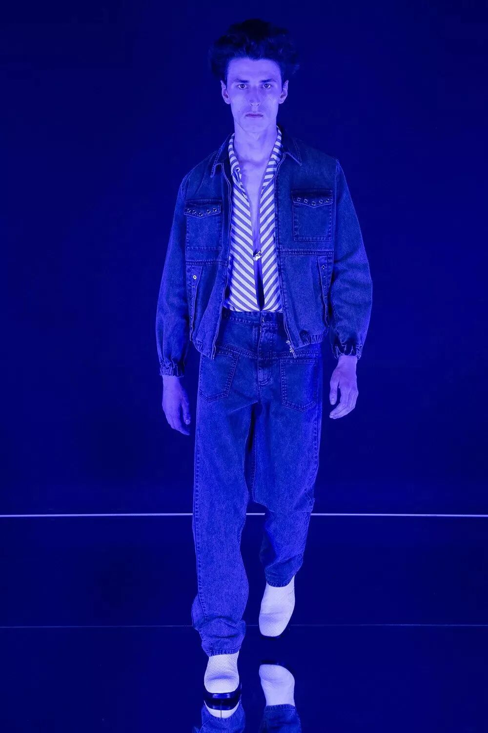 当然,我们还能在CALVIN LUO的设计中看到,许多高级时装中运用在手工编织与缝纫工艺在单宁上,细致与干练的结合带有中性的味道。