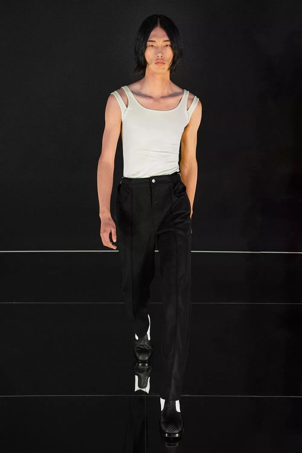 你能在简练中抓住细节,不同结构的穿插设计,让当代主义的美自由的、肆意的在服装中表现着,无论CALVIN LUO讨论的设计内核是什么,它都能成为抓住人眼睛的表达。