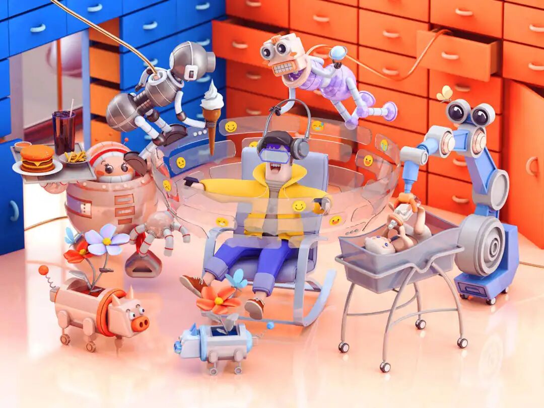 在 Dribbble 和 Behance 超火的 Living in Space 系列 2D & 3D 插画: