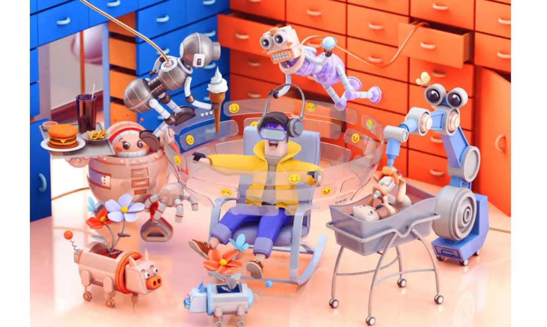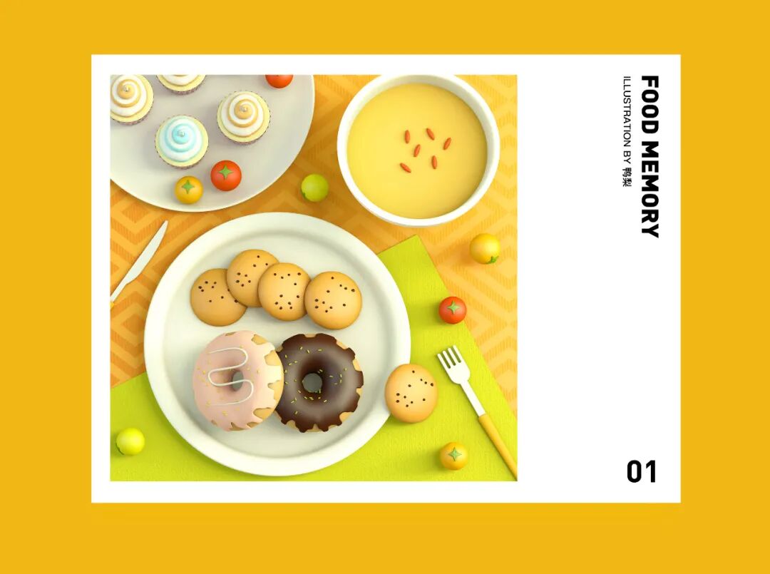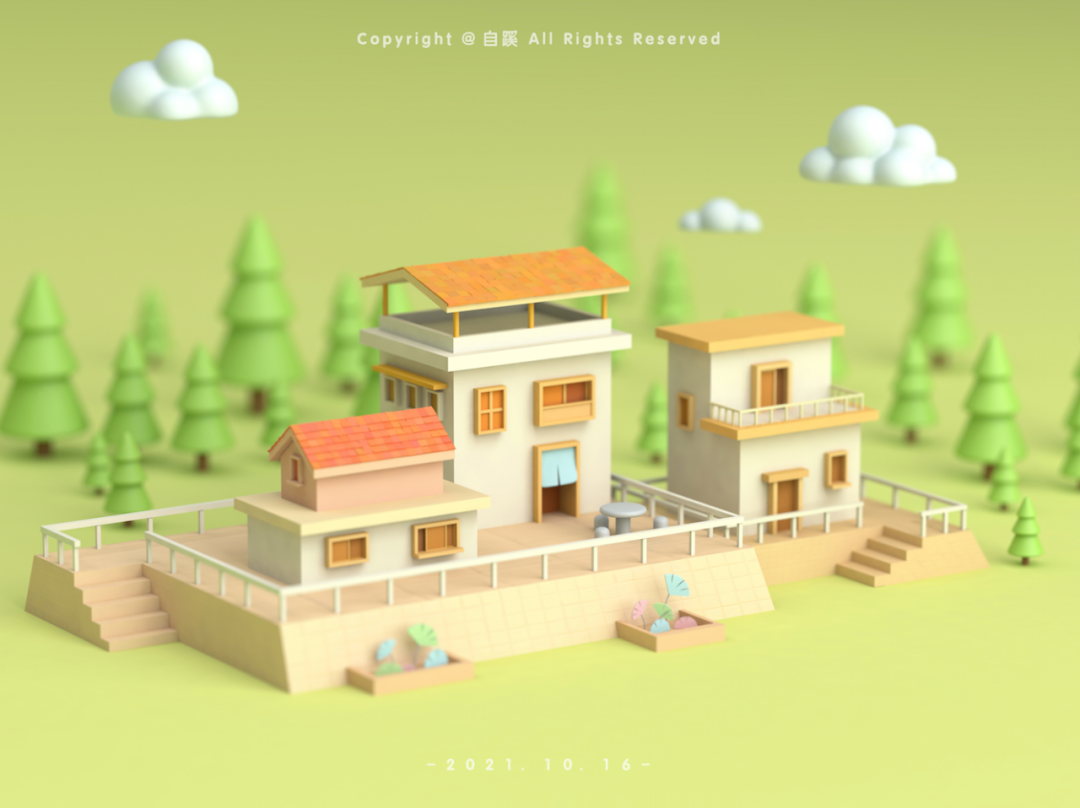 现如今,当你审视她的作品的时候,你会发觉她的作品是没有明显的「偏科」或者说缺陷的,色彩丰富又讨喜,构图严谨且规整,氛围协调又舒适,角色活泼且可爱,2D 轻拟物插画质感妥帖,3D 建模场景结构合理光影正好。