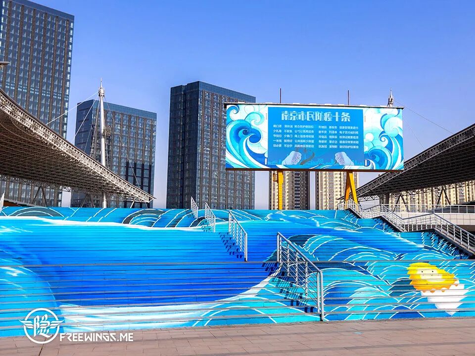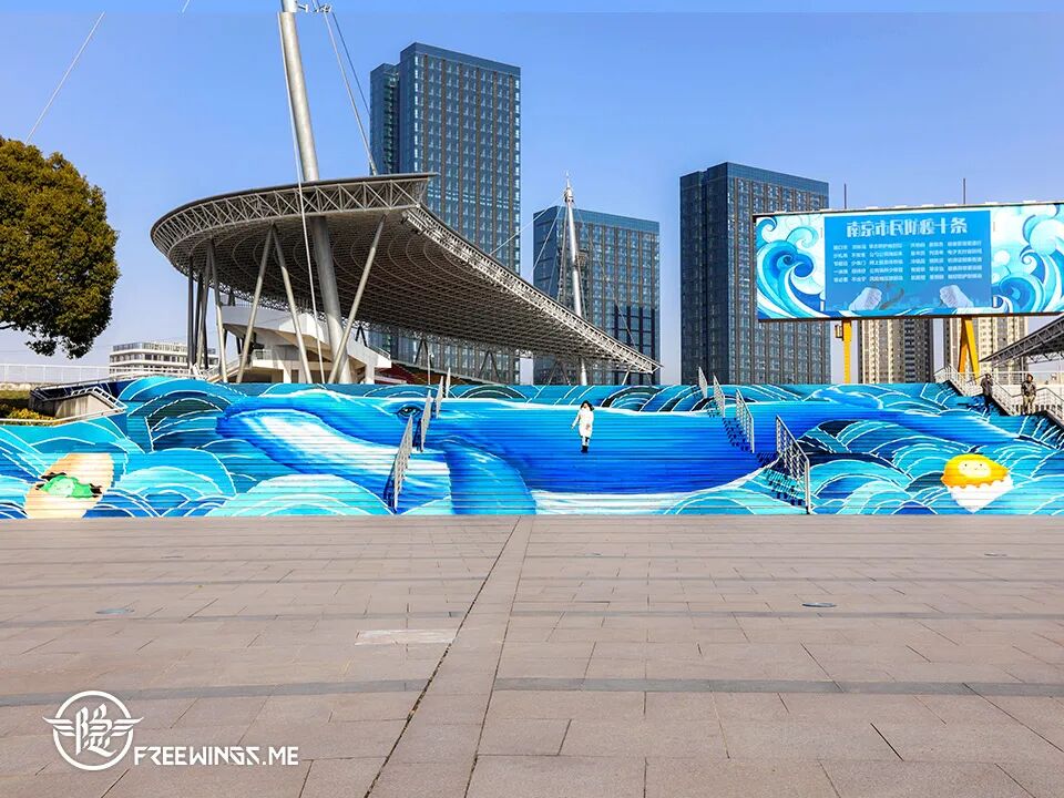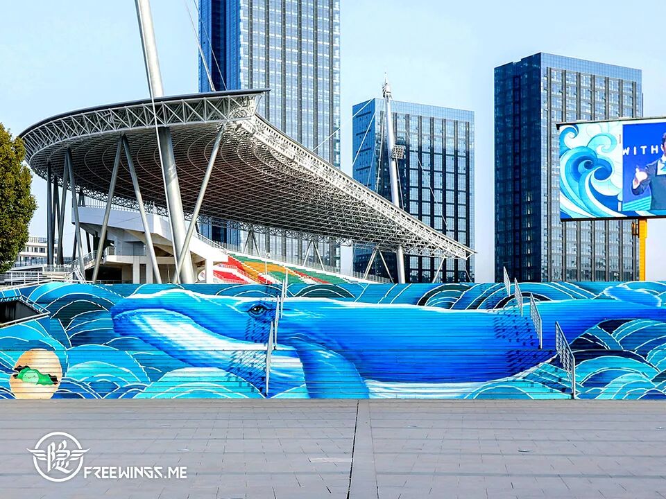 在青柠公园,我们把巨大的“蓝鲸”画到楼梯上,除了改善原来楼梯的整体美感,还表现了一种生机和活力。