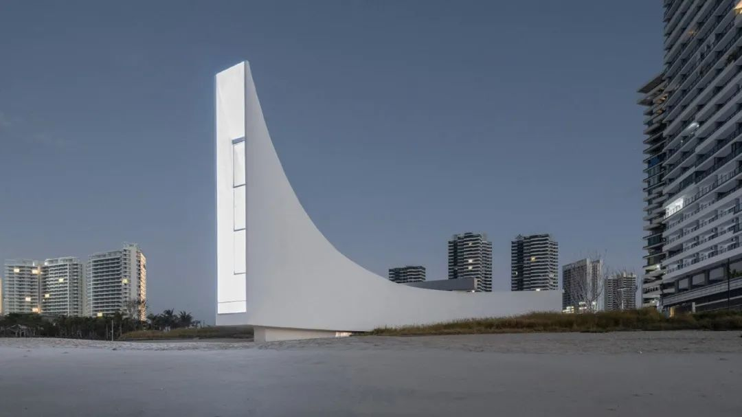 源计划建筑设计(O-office Architects)在汕尾的海滨,建造了一座宽敞明亮的白色礼堂,作为海岸线上的“精神之锚”。这座纯白色的建筑,是一座现代化的“妈祖庙”。