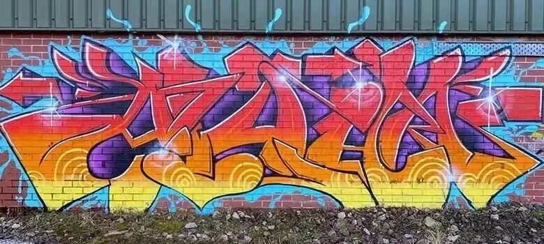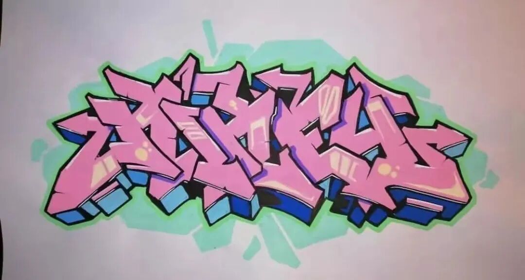 第三种切断字体,这种方式是通过将字的主体切断来增添细节的。它是许多涂鸦艺术家们最常用的技巧。它最后呈现的效果是也最为明显的。需要注意的是这种方法需要在画框架的时候就把它分割好,然后再去填充颜色。我们也可以在切断的边缘加一些影子来增加效果。