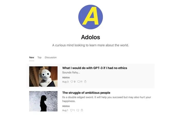 美国加州大学计算机系名叫 Liam Porr 的学生以假名“adolos”和用 GPT-3 生成的文章做自媒体,其第一篇文章「Feeling unproductive?Maybe you should stop overthinking」就登上了全球知名技术论坛「Hacker News」的榜首。