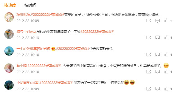 然而,与其说此次「好事要成双」campaign只是一场单纯的用户注意力抢夺,不如说是品牌讲故事的底层逻辑,依托2022年2月22日所自带的流量价值,进一步塑造品牌暖心底色。