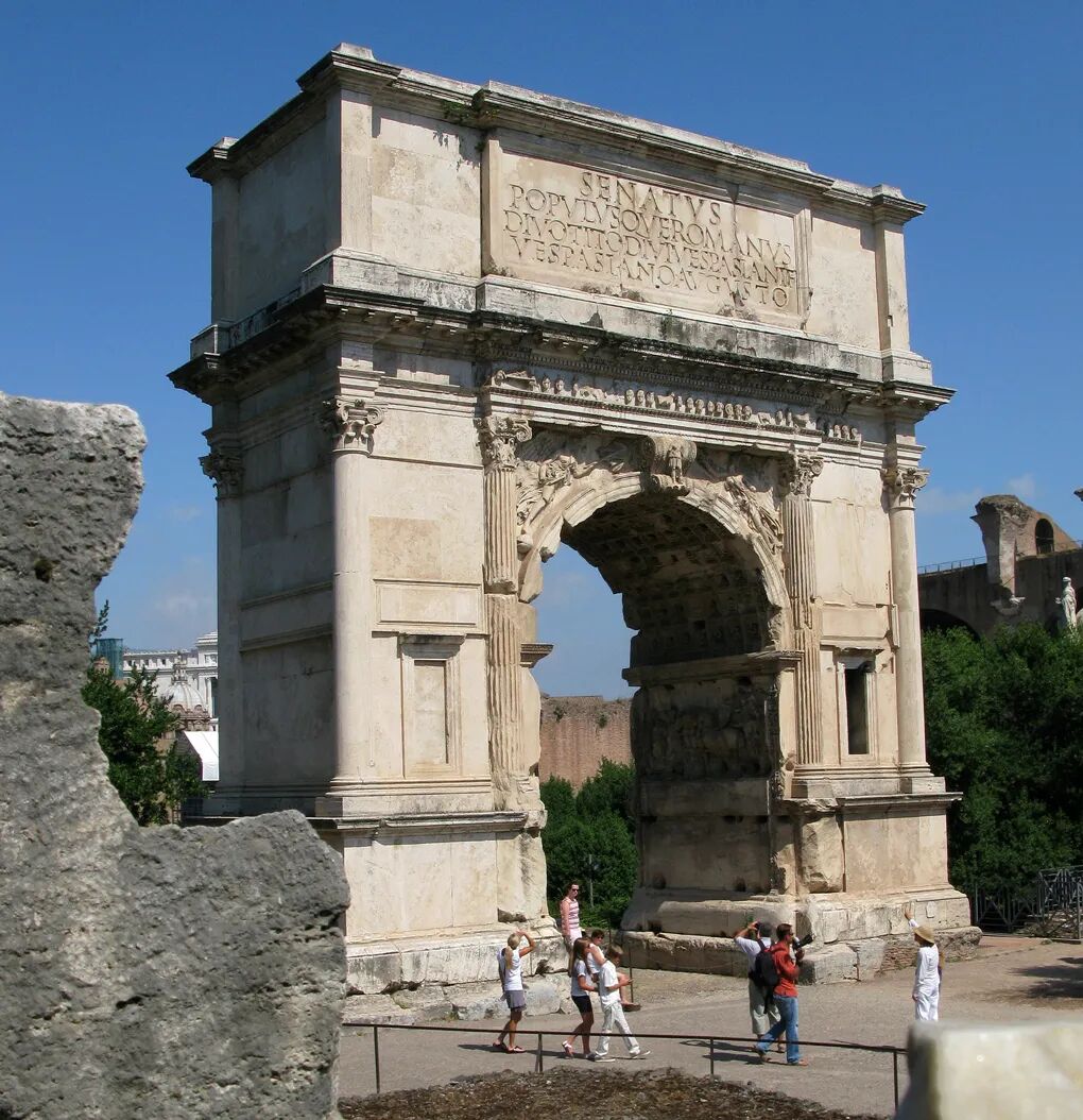 提图斯凯旋门始建于公元81年,是目前罗马城里保留的三座凯旋门之一,也是唯一一座单拱凯旋门,用来纪念提图斯皇帝在公元70年征服雅路撒冷。