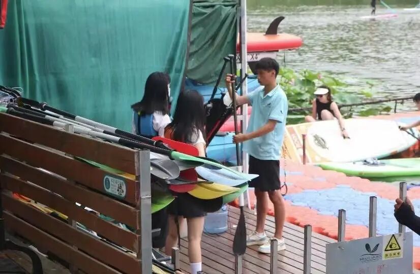 教练告诉我,桨板体验并不能预约,而是需要本人到场排队买票。因为场地在荷花池里,如果当天天气不好,有大风,就会停票。