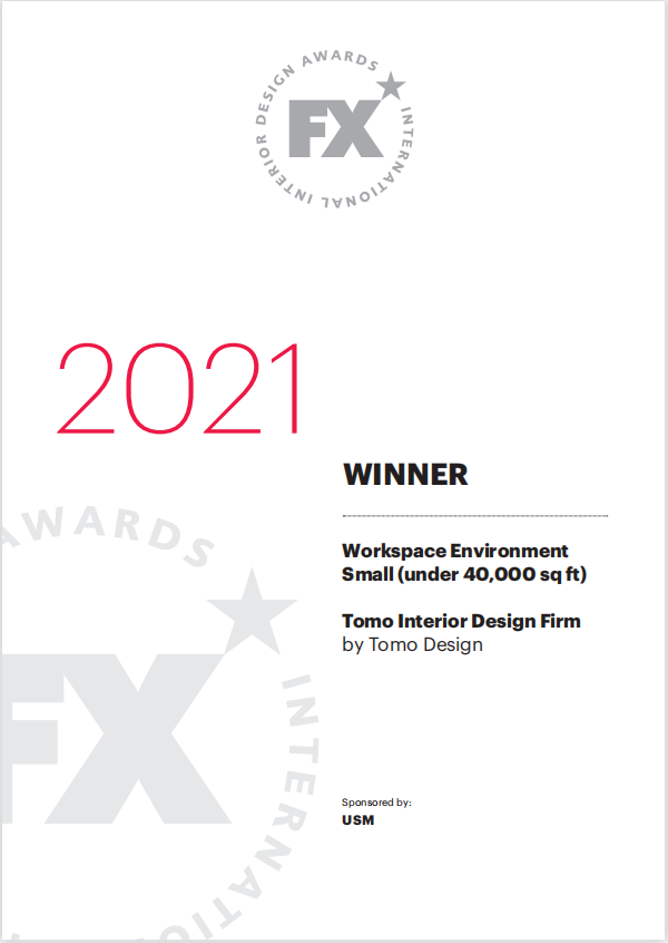 备受设计业界关注的英国FX国际室内设计大奖,日前举行了颇具动感创意的线上颁奖典礼并重磅揭晓了2021年度获奖名单。来自中国深圳的TOMO東木筑造以“印象空间论”打造的先锋自用办公空间,在这一全球性赛事的角逐中斩获“小型办公空间”类别的唯一大奖Winner。