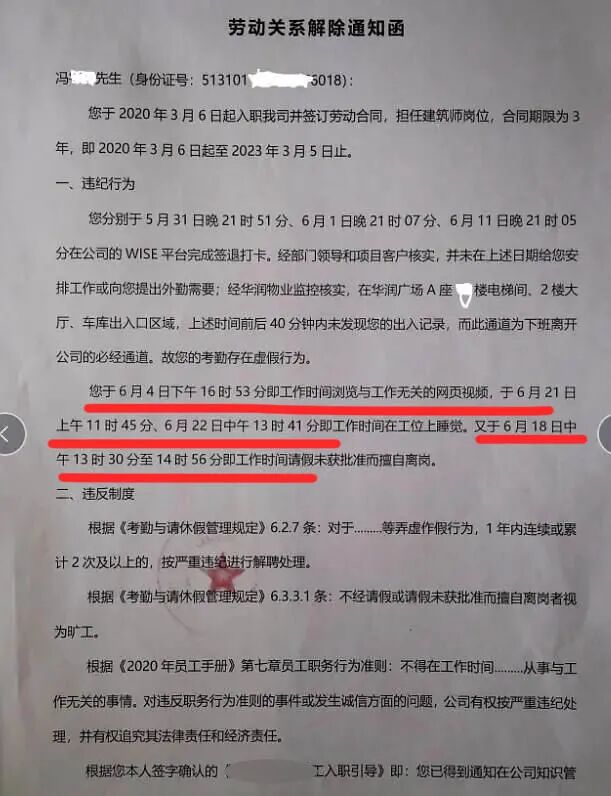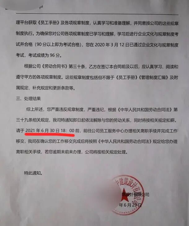 还曝光出了劳动关系解除通知函
