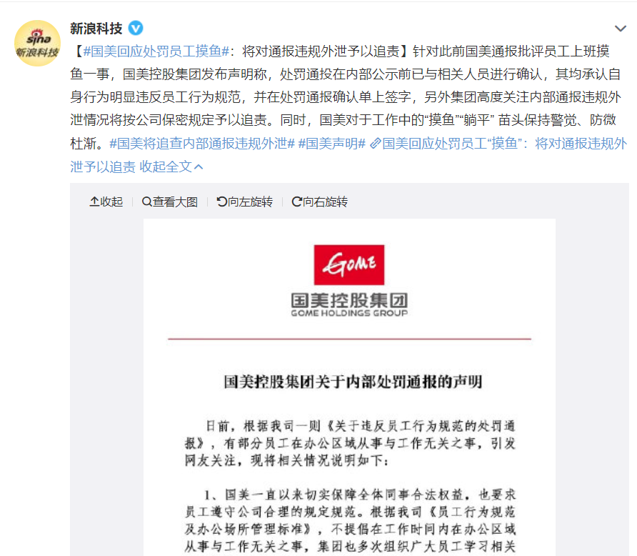#国美通报批评员工上班摸鱼#