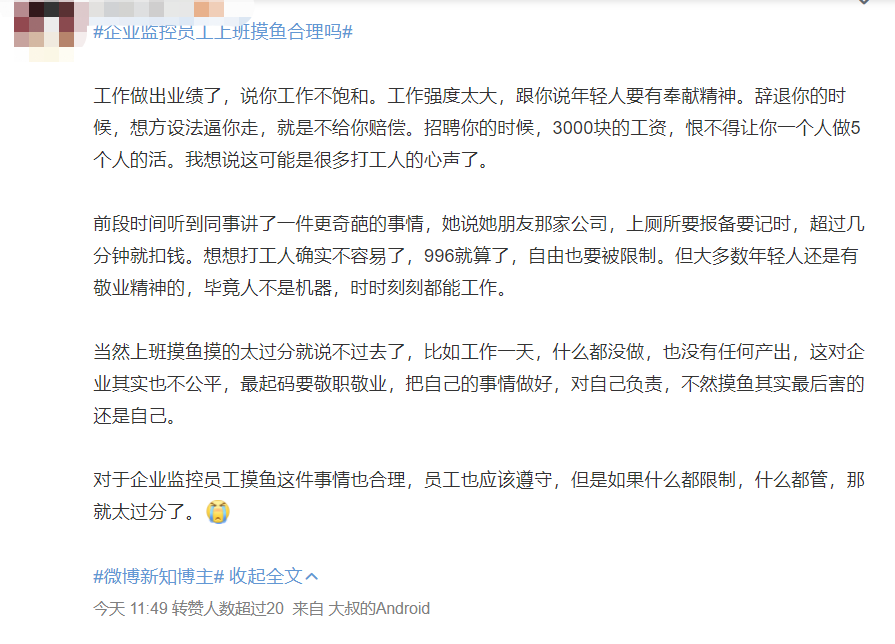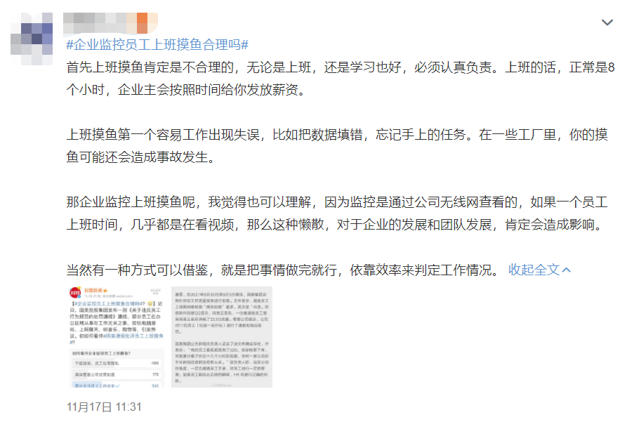 #企业监控员工上班摸鱼合理吗#