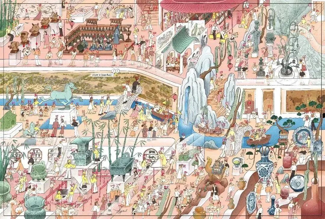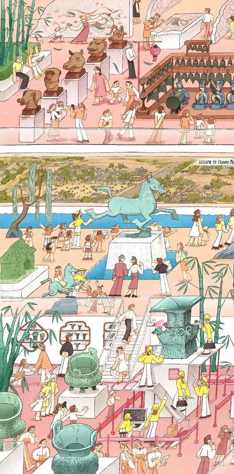 西朴:嗯,最初是想尝试画有东方元素的主题,所以选了中国文物博物馆,想着可以不受空间地域的限制,就试着将大家耳熟能详的著名文物集合在一起。